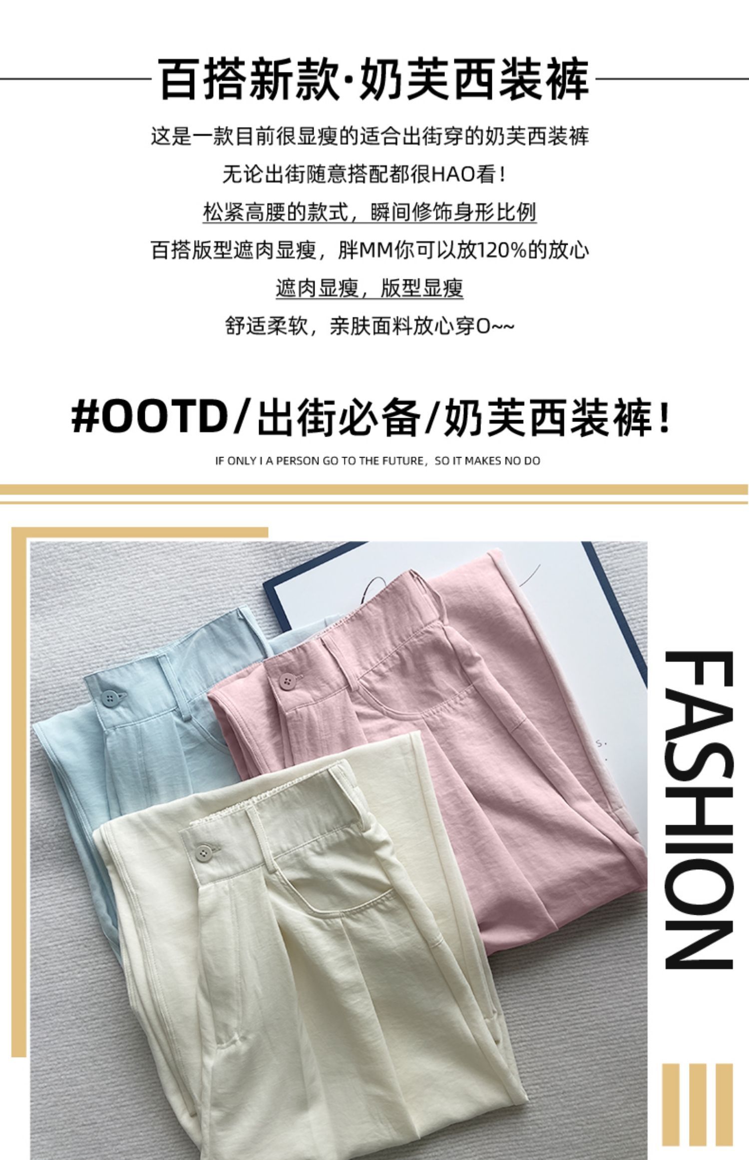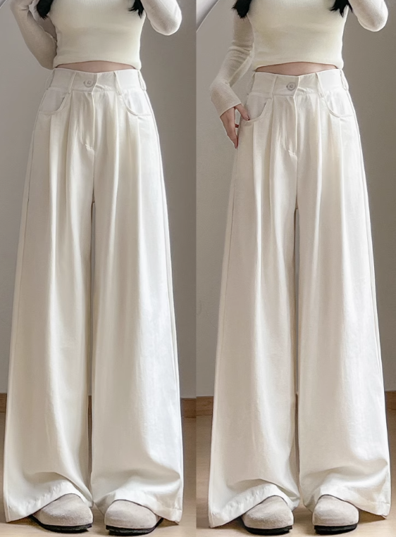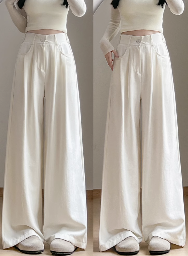 冰絲垂感山本褲女夏季薄2025新款小個子高腰米白色棉麻西裝闊腿褲