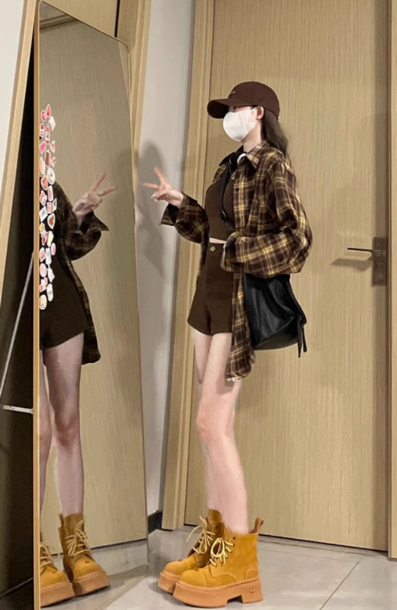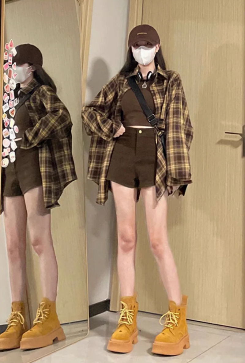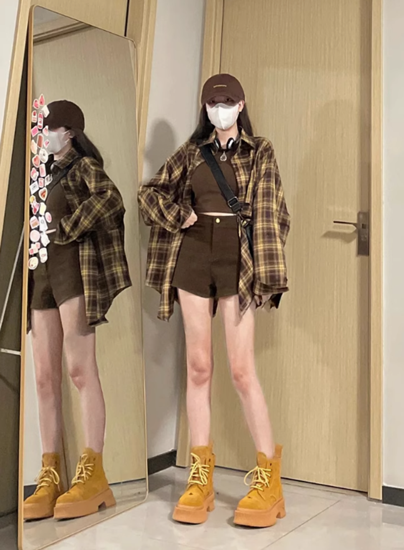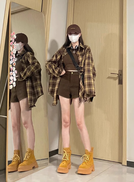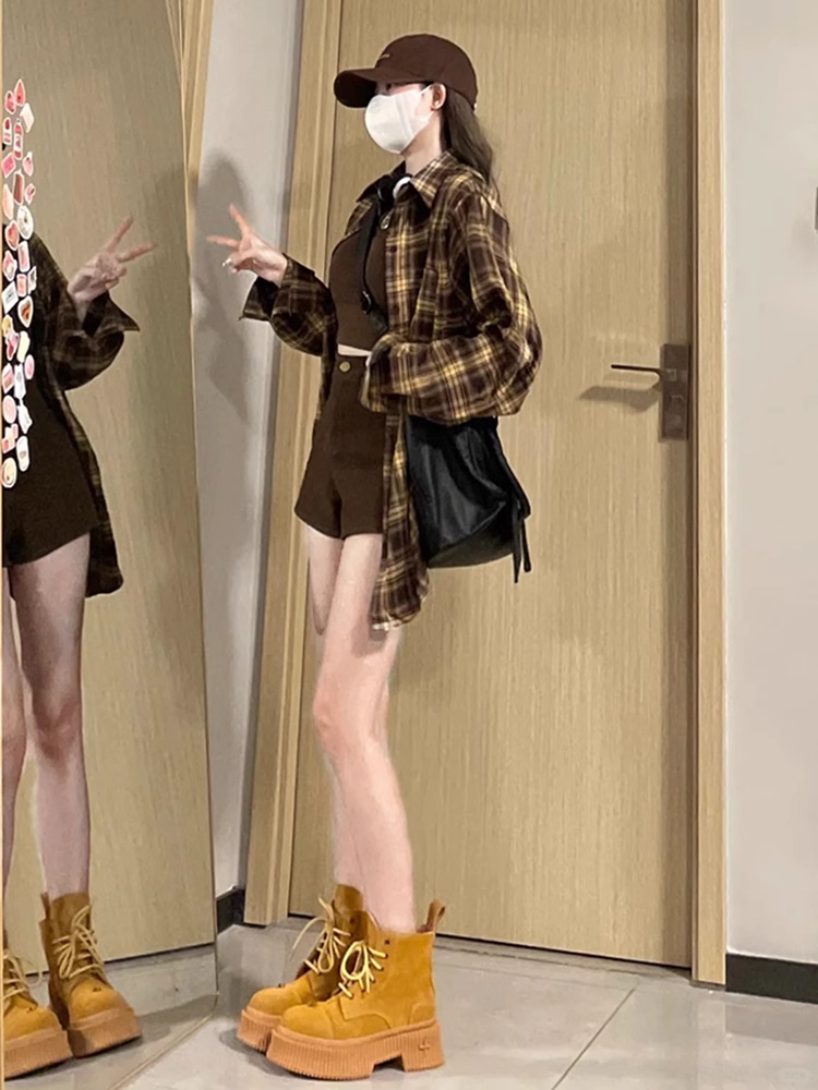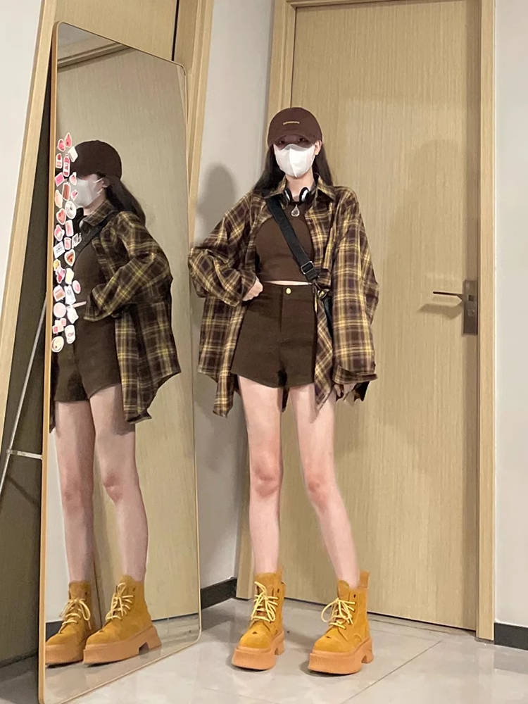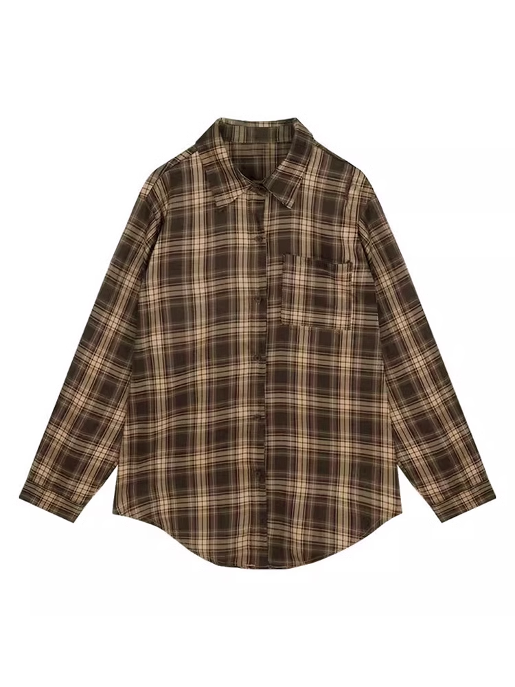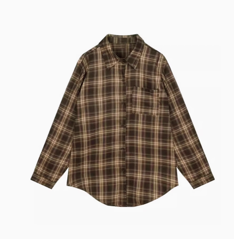 復古格子長袖襯衫女夏款設計感襯衣慵懶寬松防曬外套中長款上衣夏