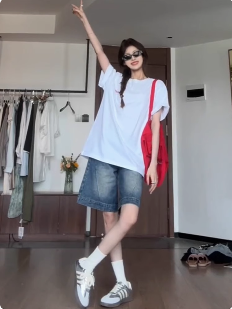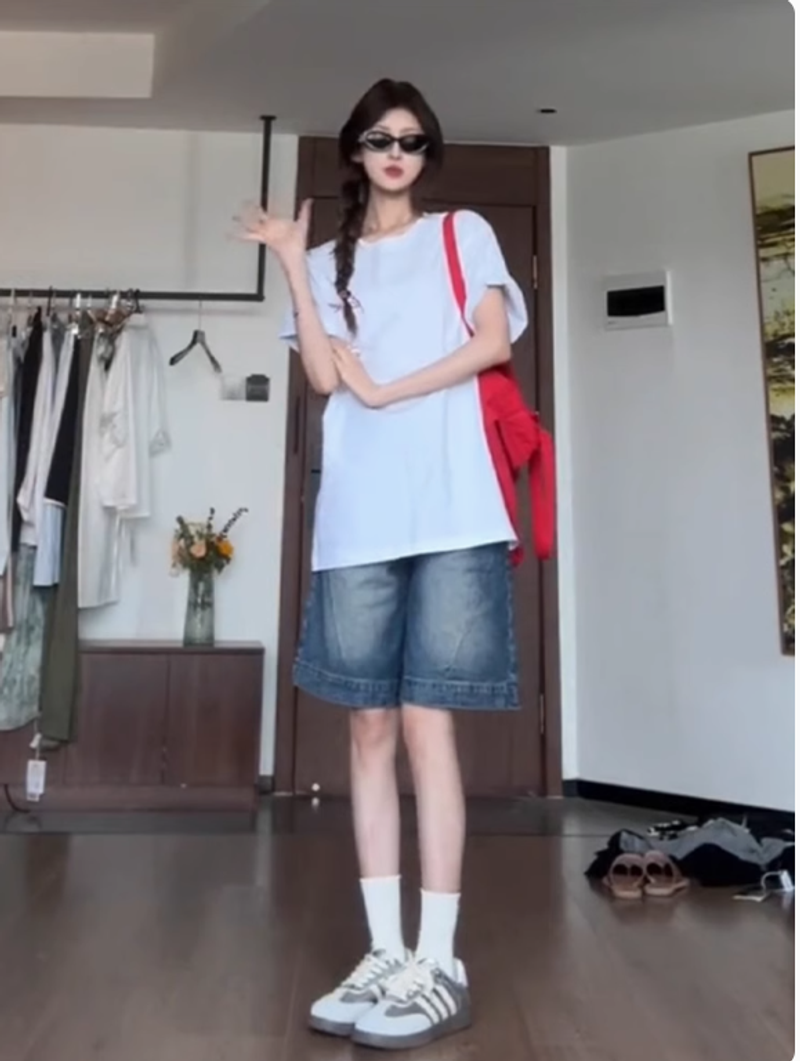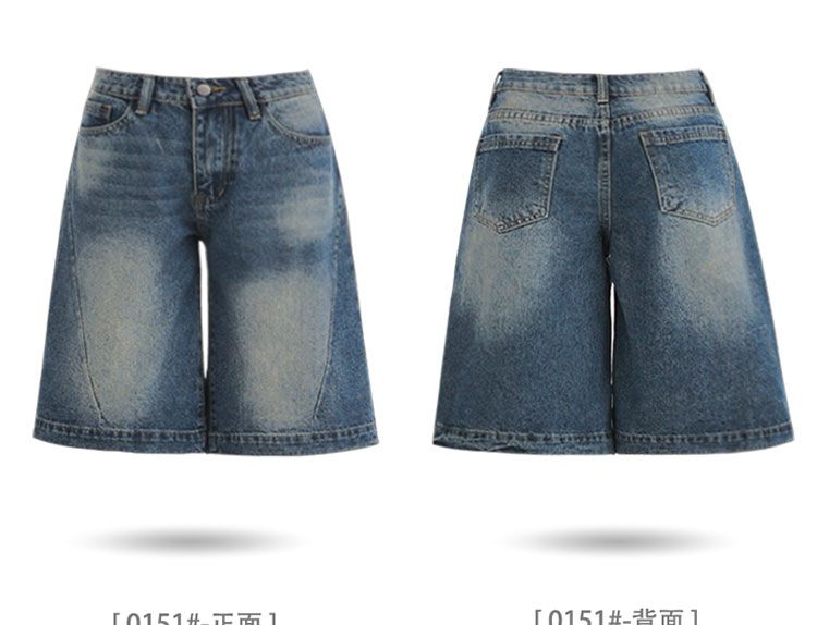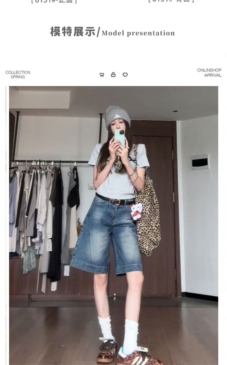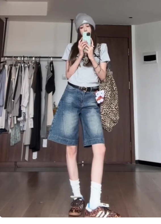 復古辣妹五分褲牛仔短褲女夏季低腰5分褲寬鬆設計感直筒闊腿中褲