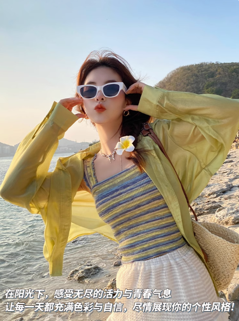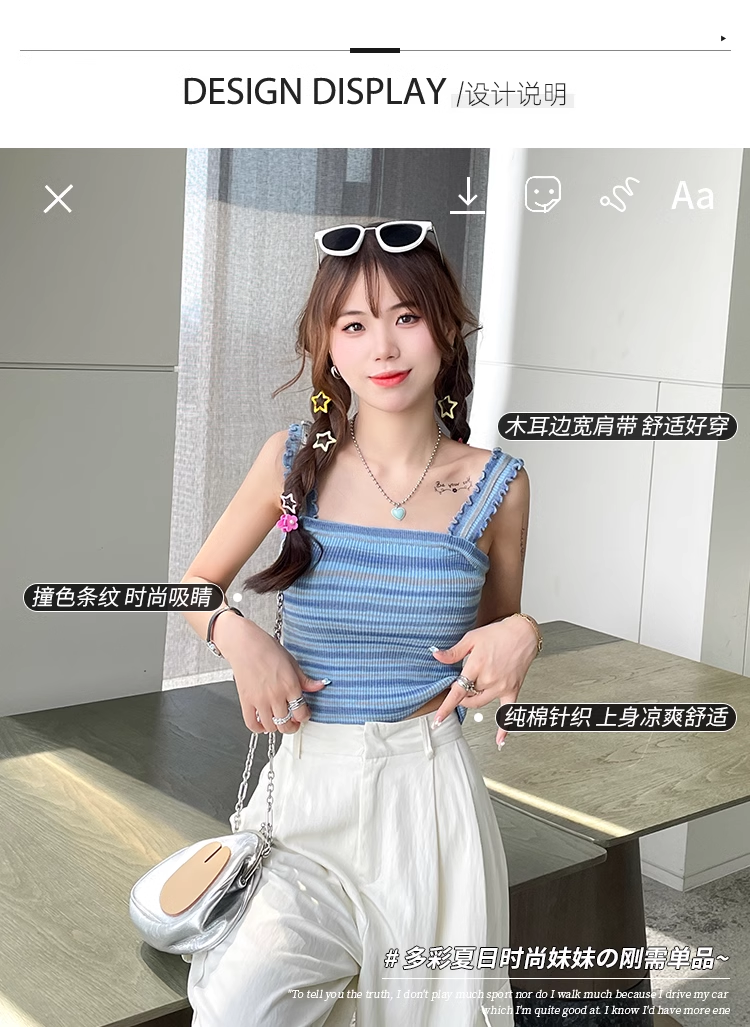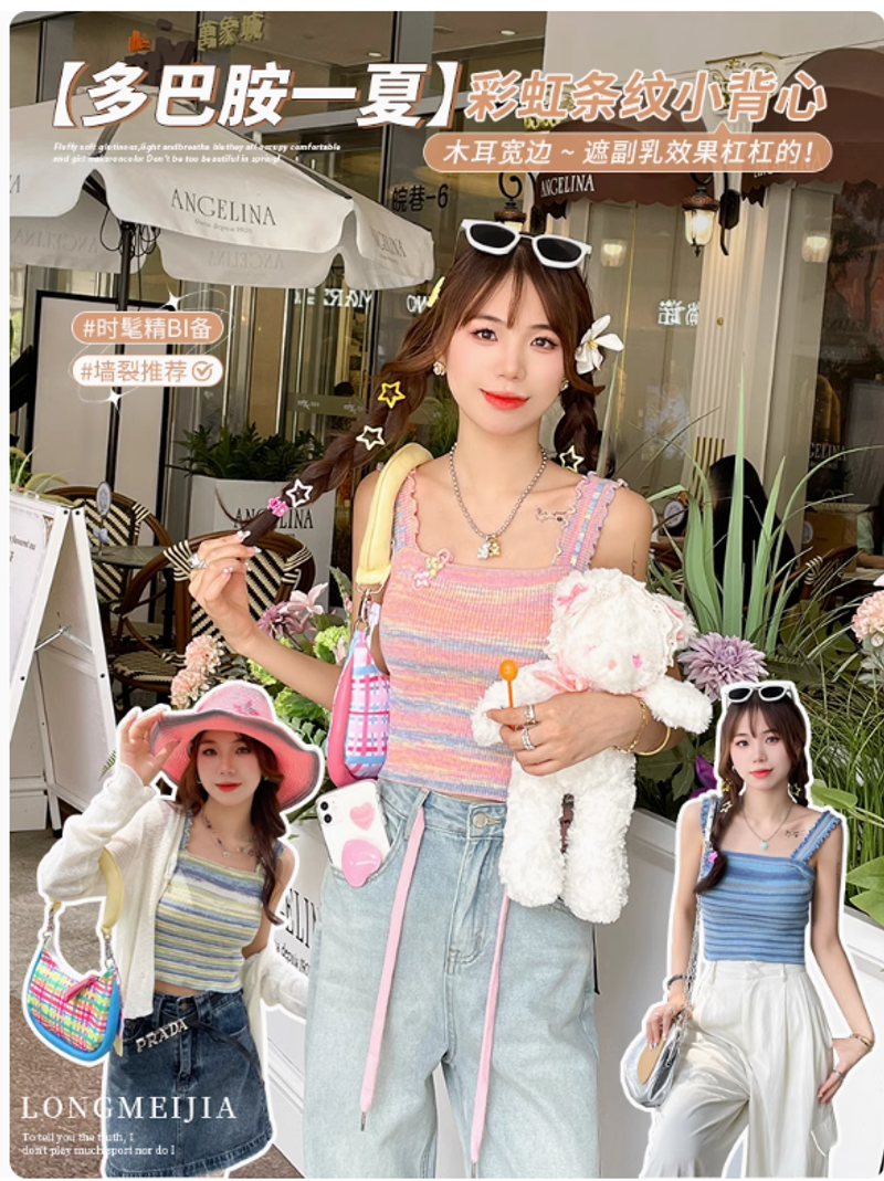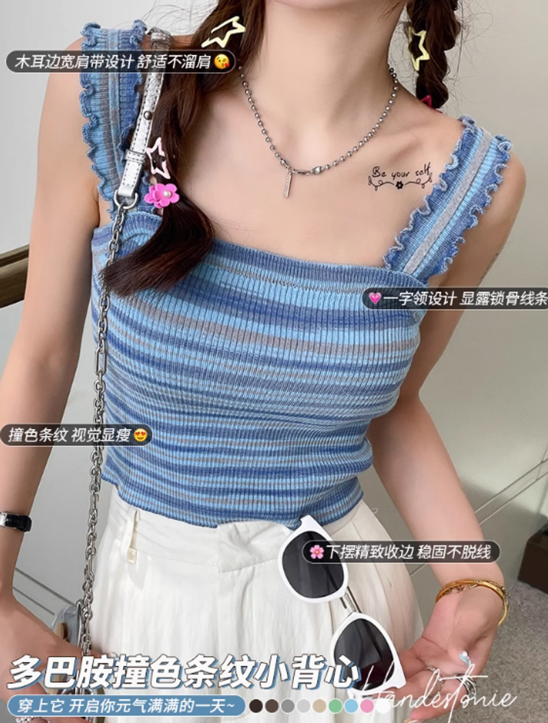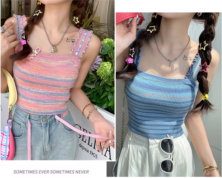 多巴胺穿搭辣妹小吊带女士内搭夏季绝美针织上衣彩色条纹背心外穿
