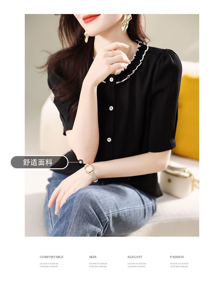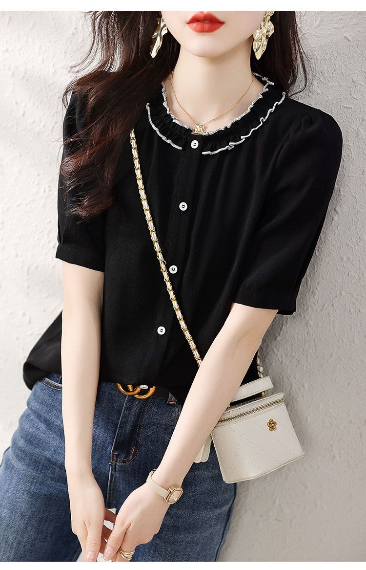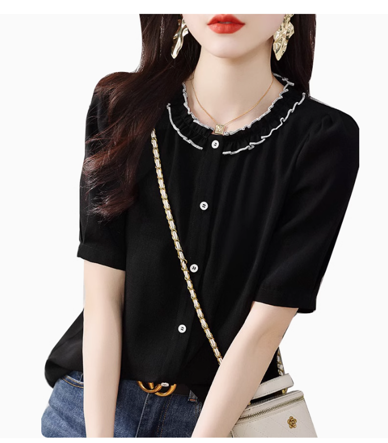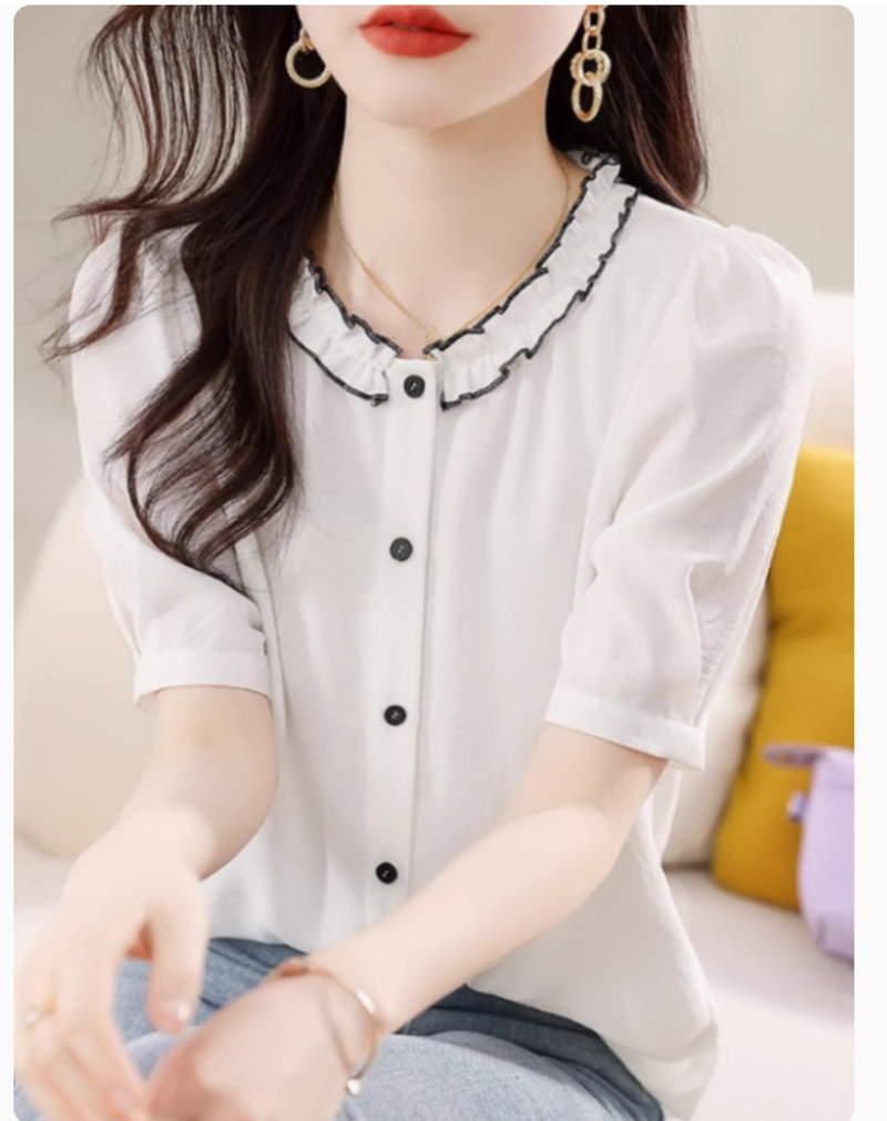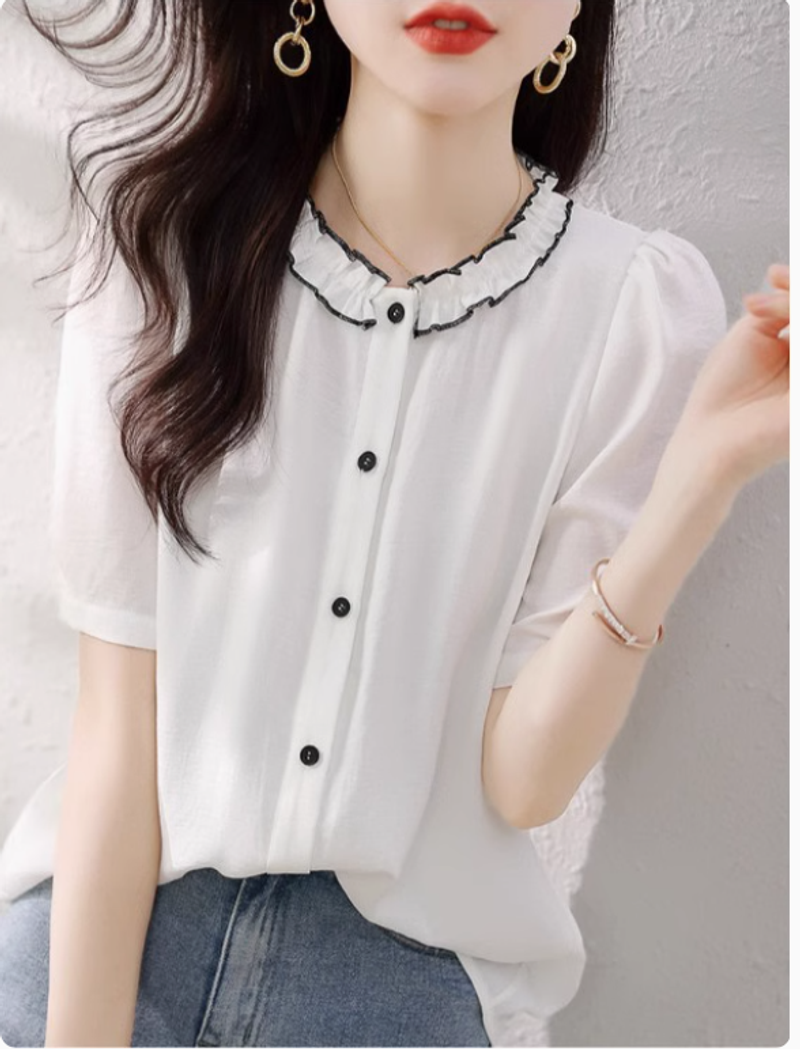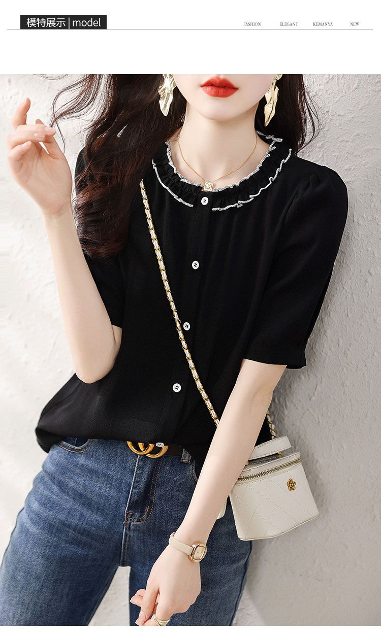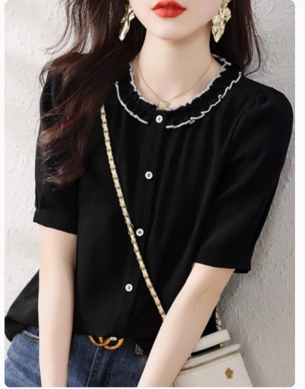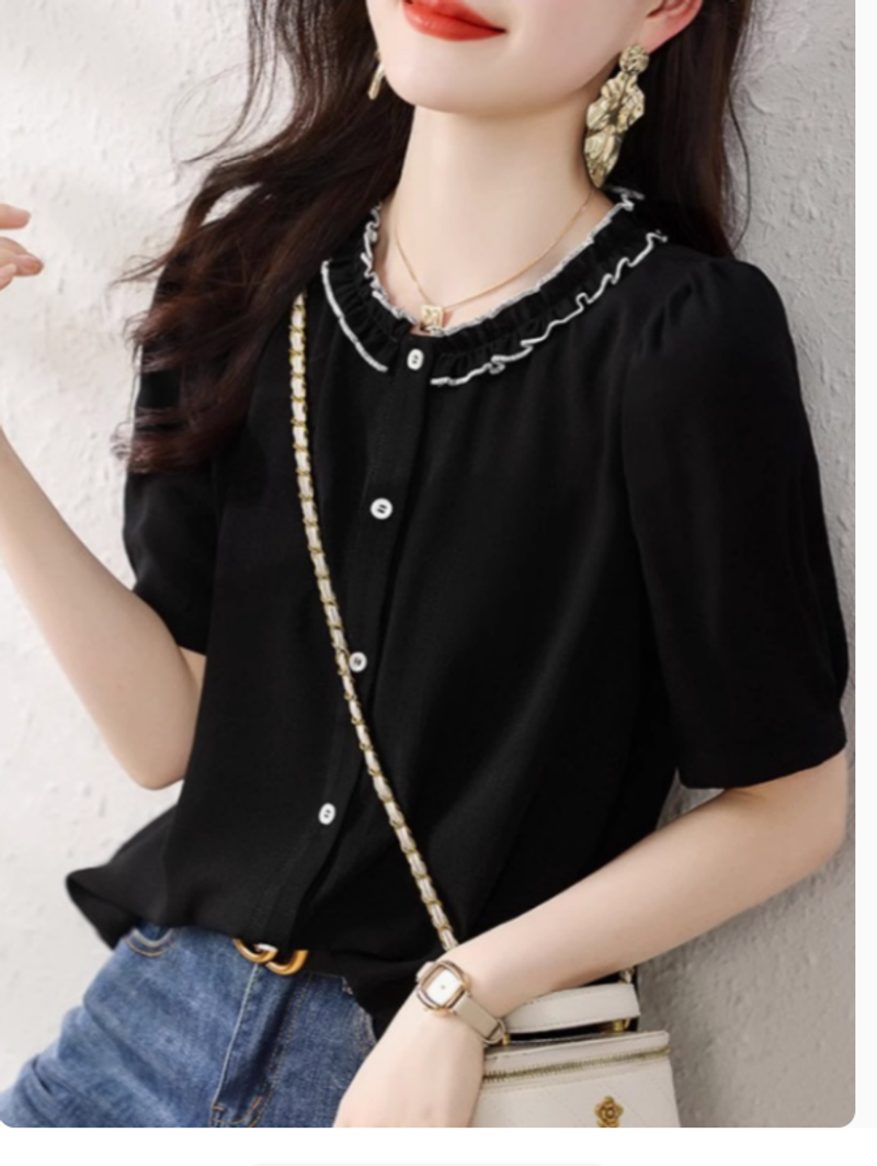 大碼女短袖襯衫女夏季新款微胖mm洋氣減齡遮肚顯瘦雪紡衫t恤上衣
