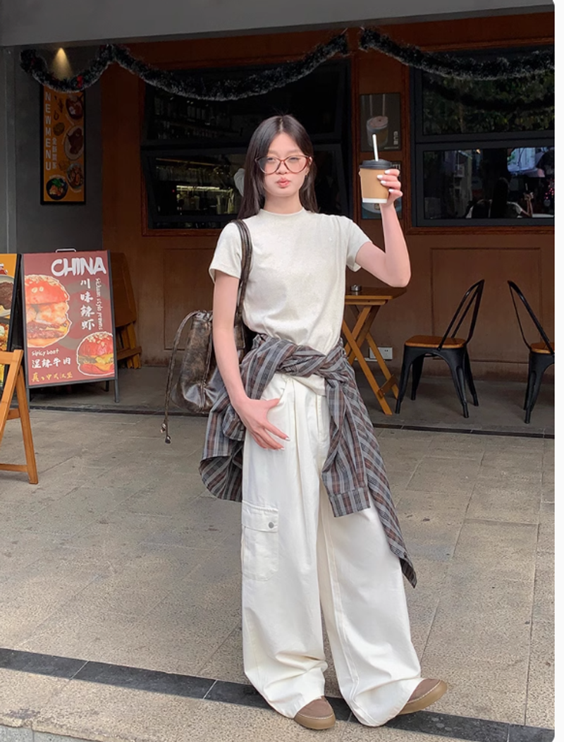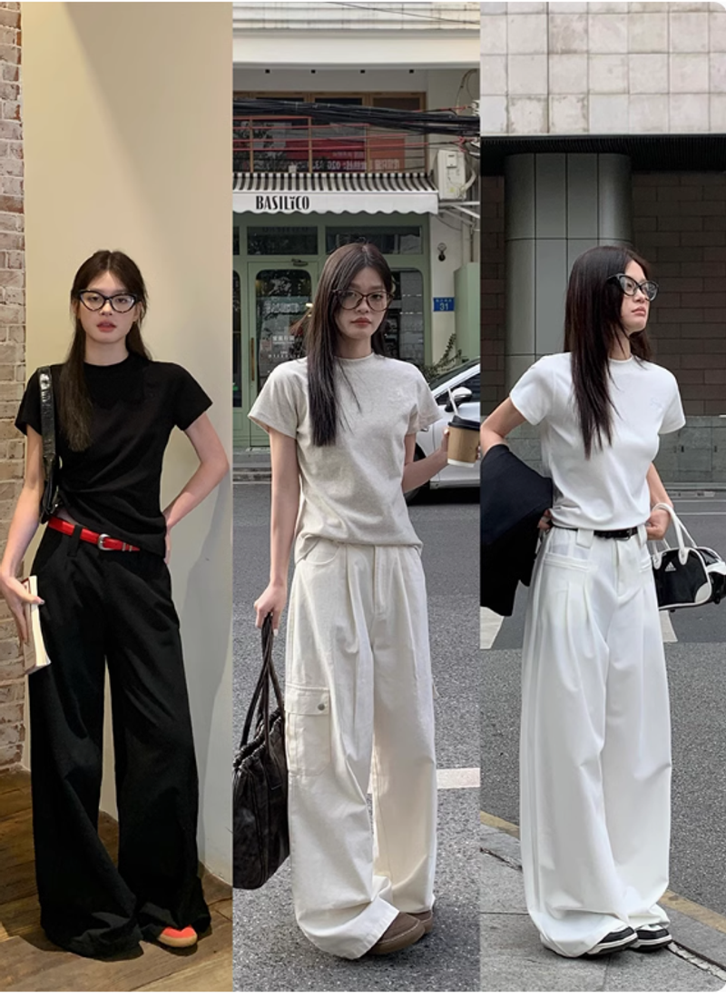 宋正恩正肩短袖t恤女2025新款夏季純棉寬鬆白色內搭半袖體恤上衣