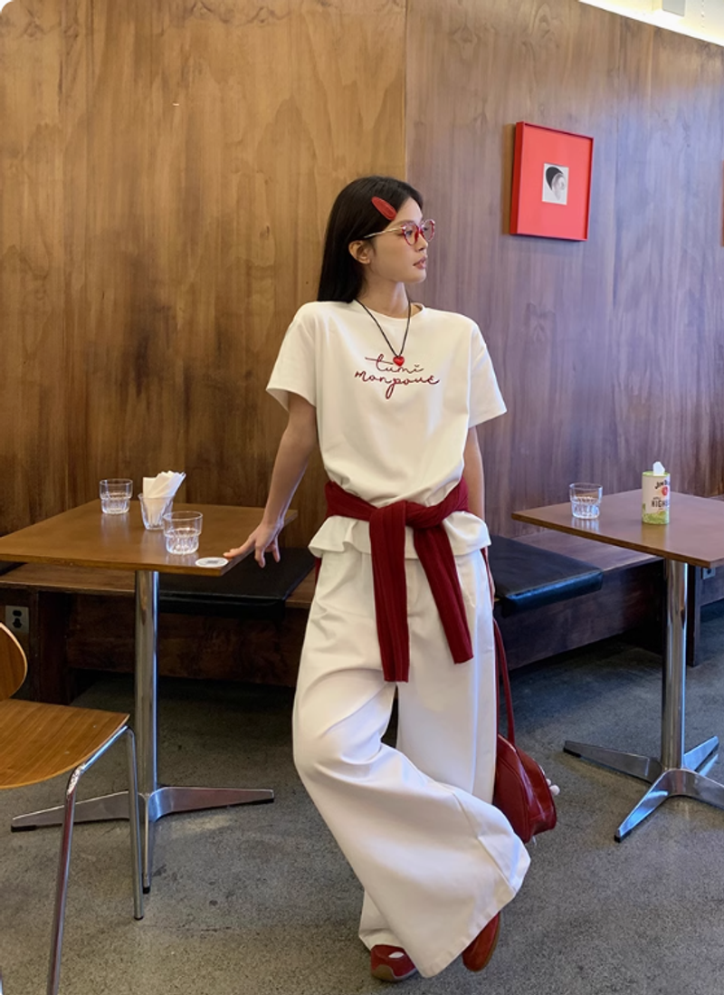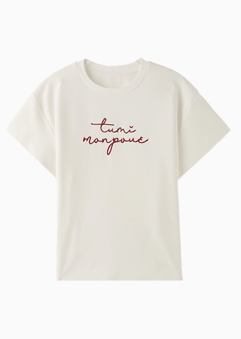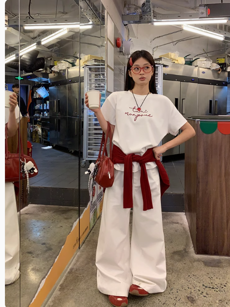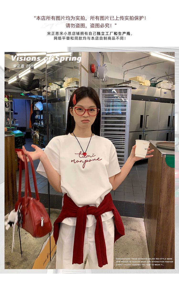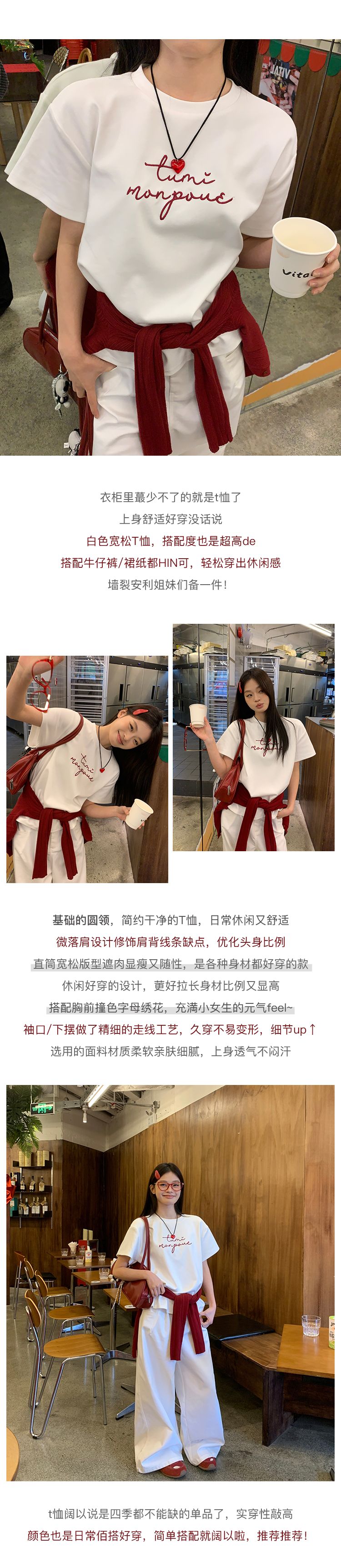 宋正恩白色圓領短袖t恤女夏季韓系寬鬆休閒慵懶風正肩百搭上衣潮