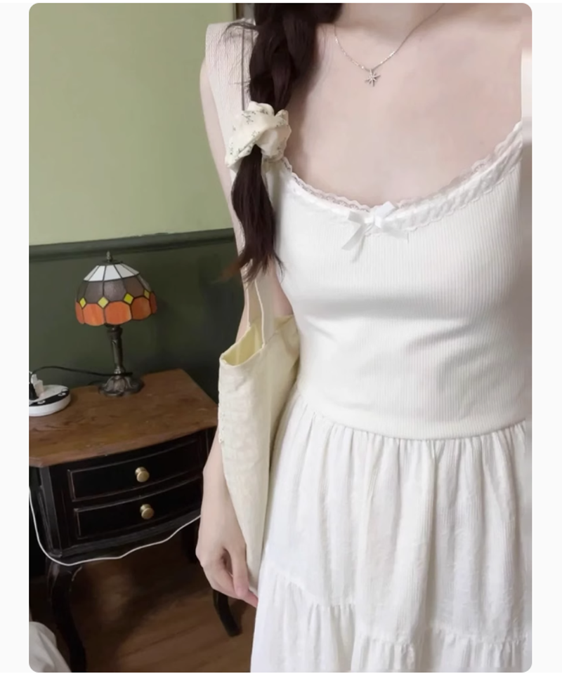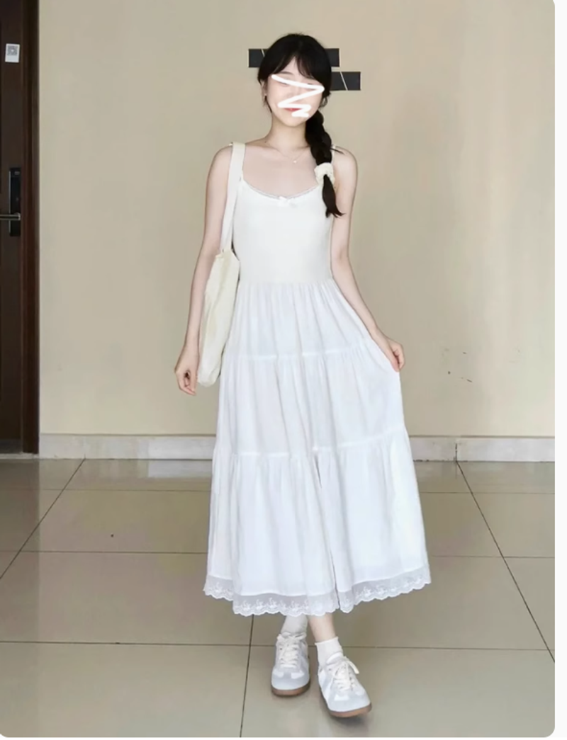 開春白色吊帶連衣裙子超火女裝2025新款韓系流行穿搭氣質長裙套裝