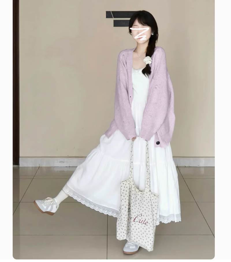 香芋紫開衫+吊帶裙【套裝】優質版 S