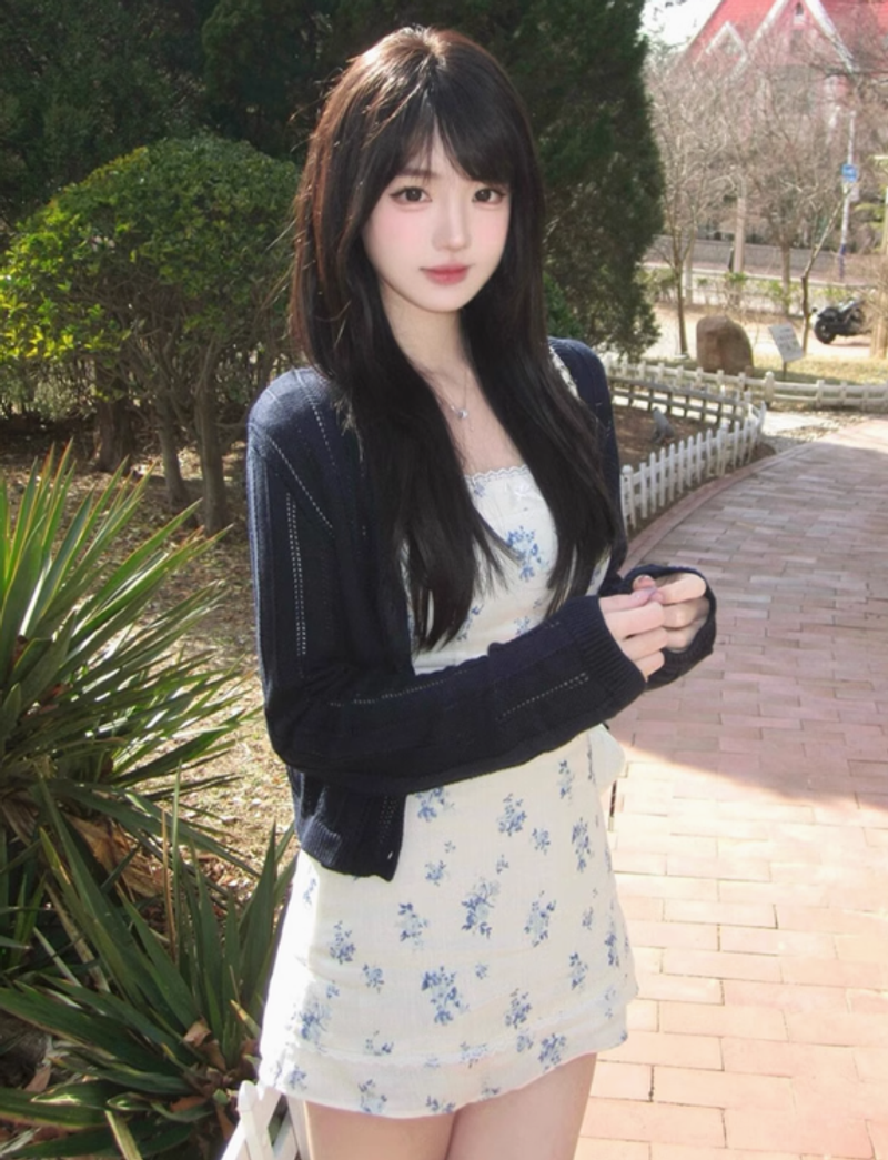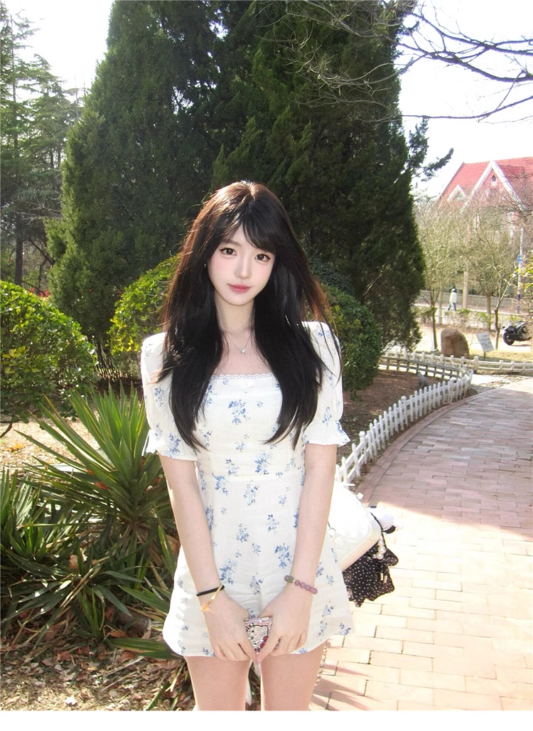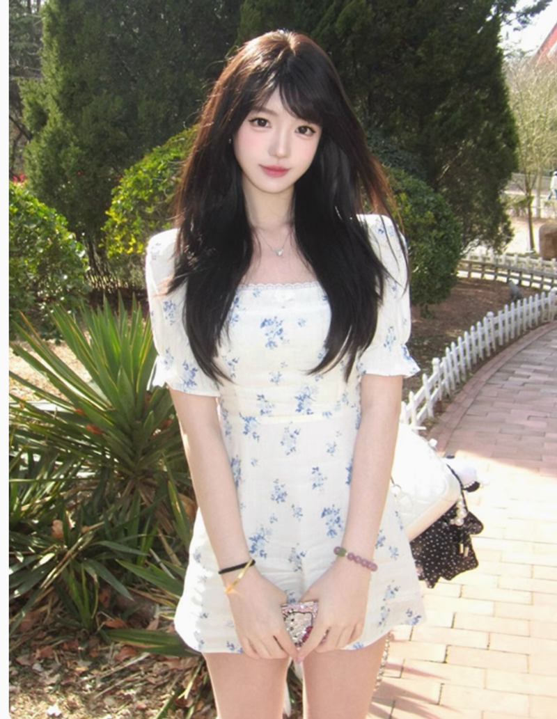 開春韓系氣質穿搭白色方領碎花連衣裙子女夏季2025年新款短裙套裝