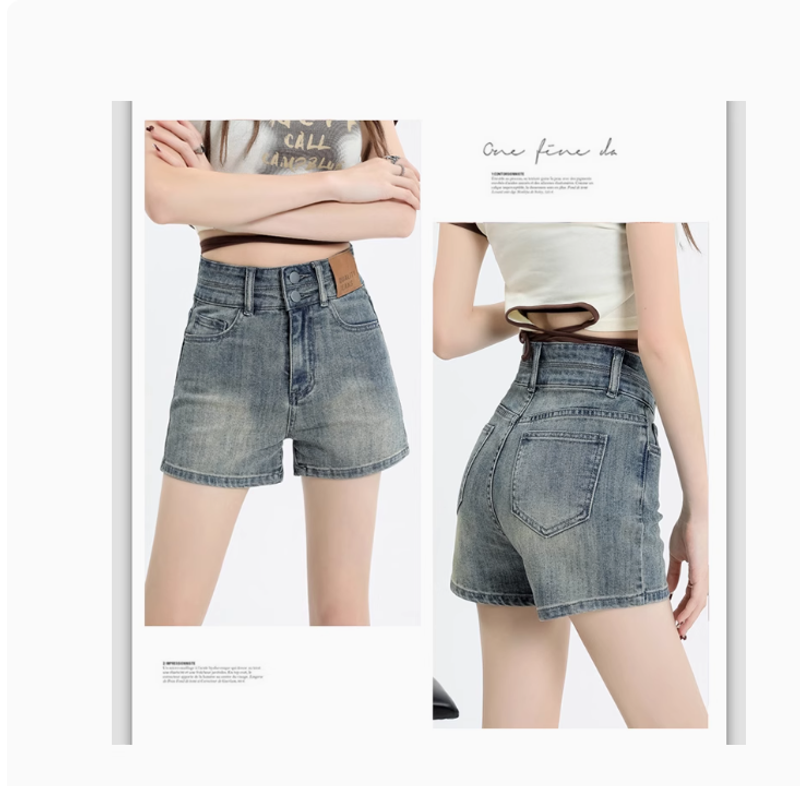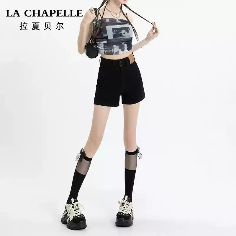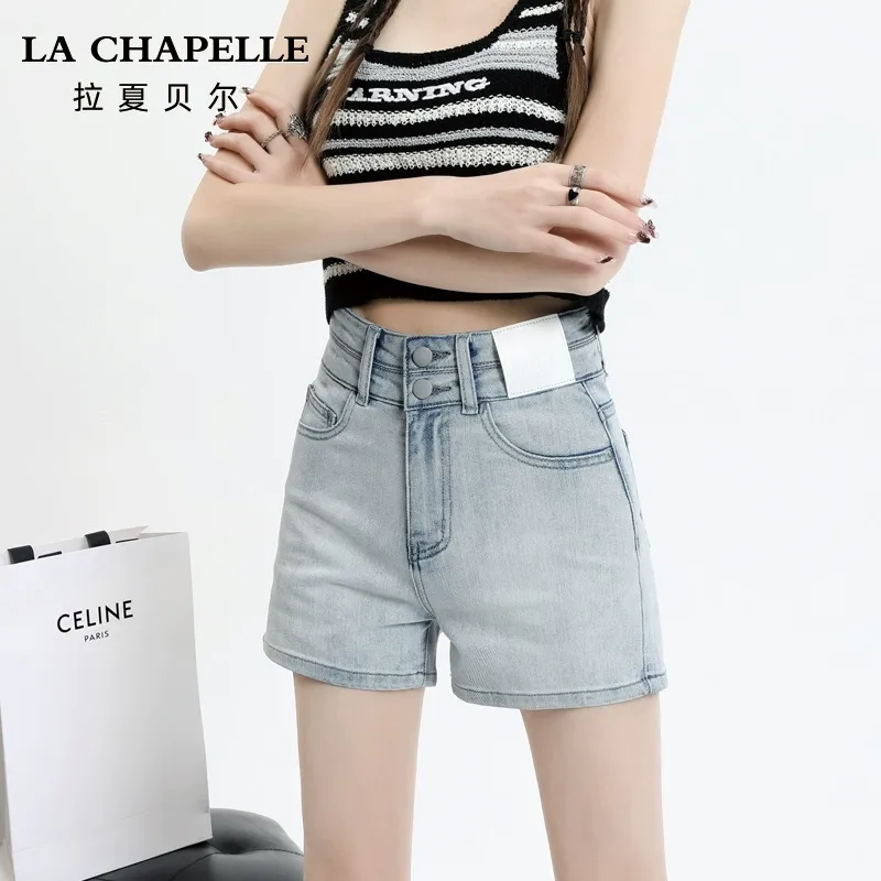 拉夏貝爾復古牛仔短褲女夏季2025新款高腰小個子顯瘦a字闊腿熱褲