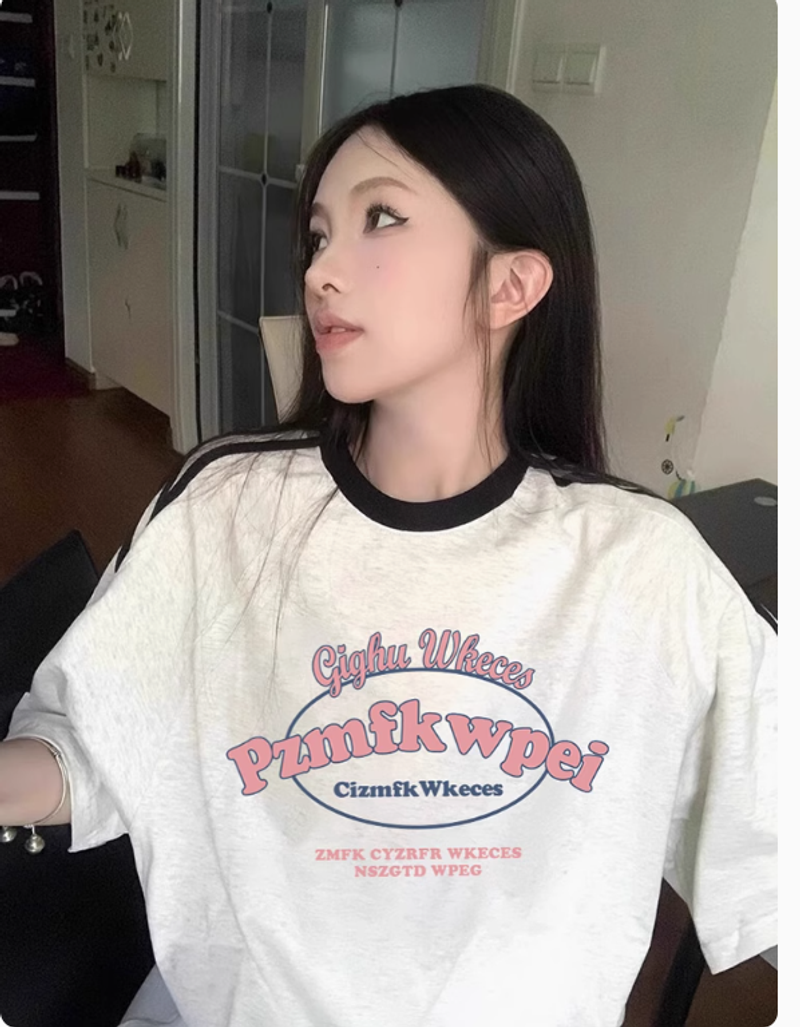 正肩條紋短袖t恤女夏季純棉寬鬆美式設計感小衆港味chic半袖上衣