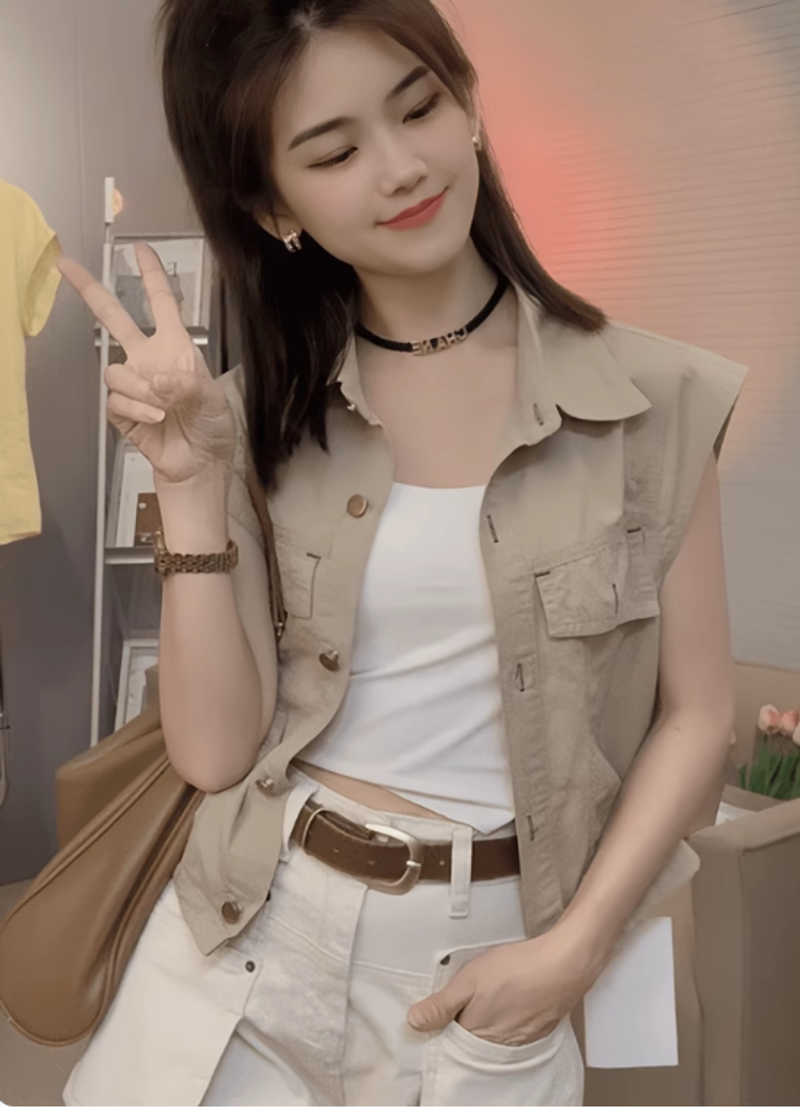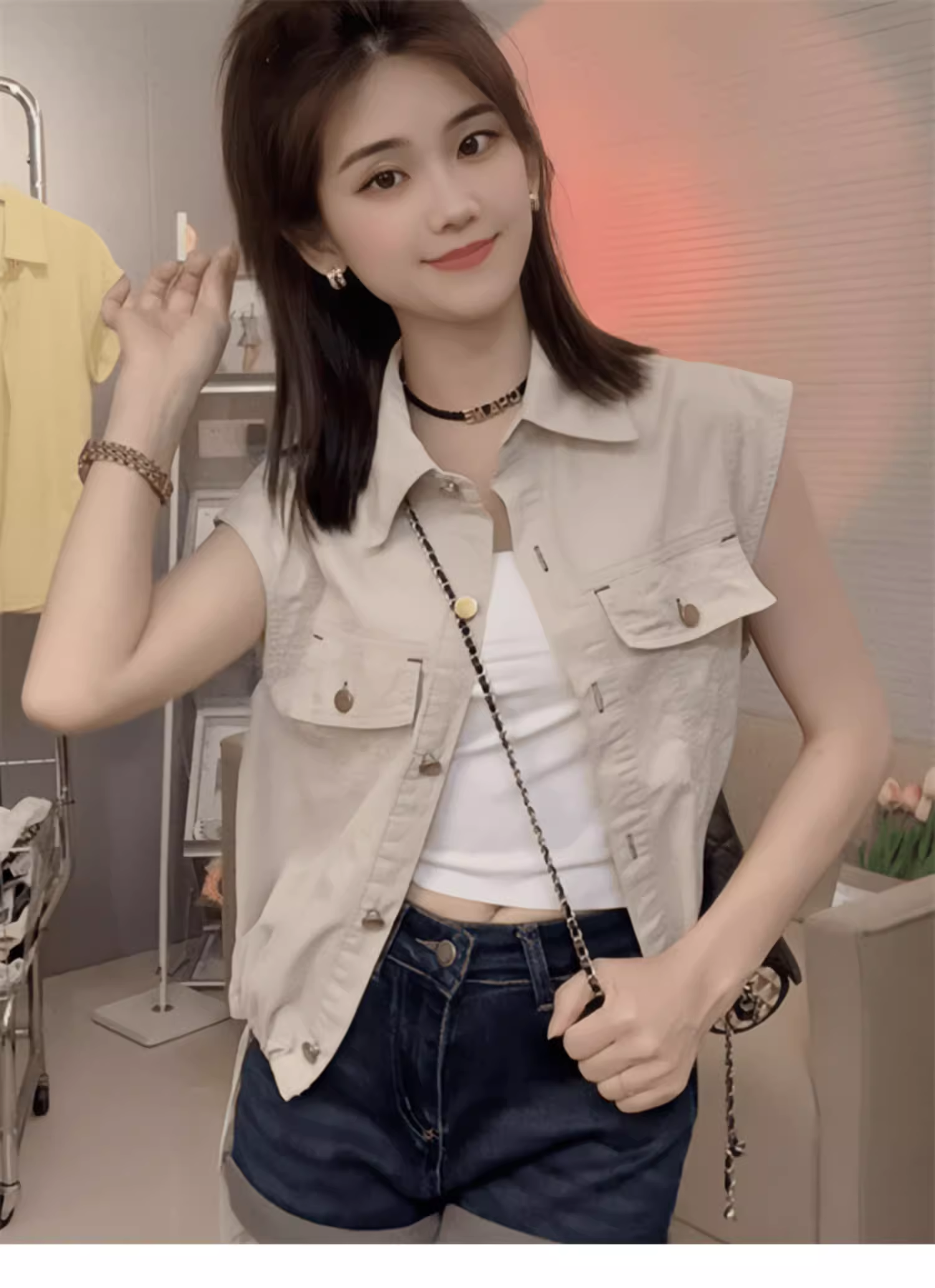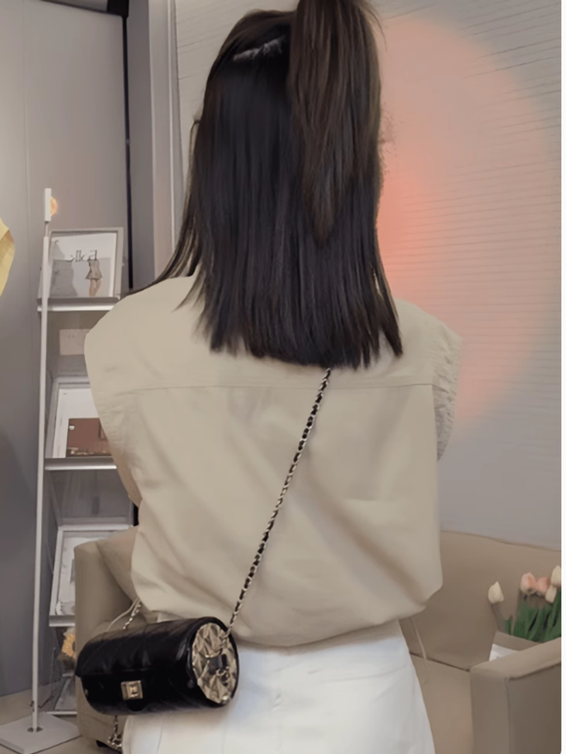 法式氣質無袖襯衫女夏款2025新款小個子短款襯衣外搭開衫上衣夏季