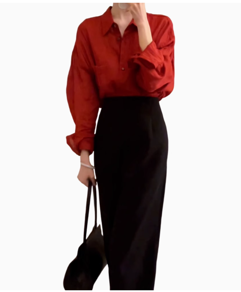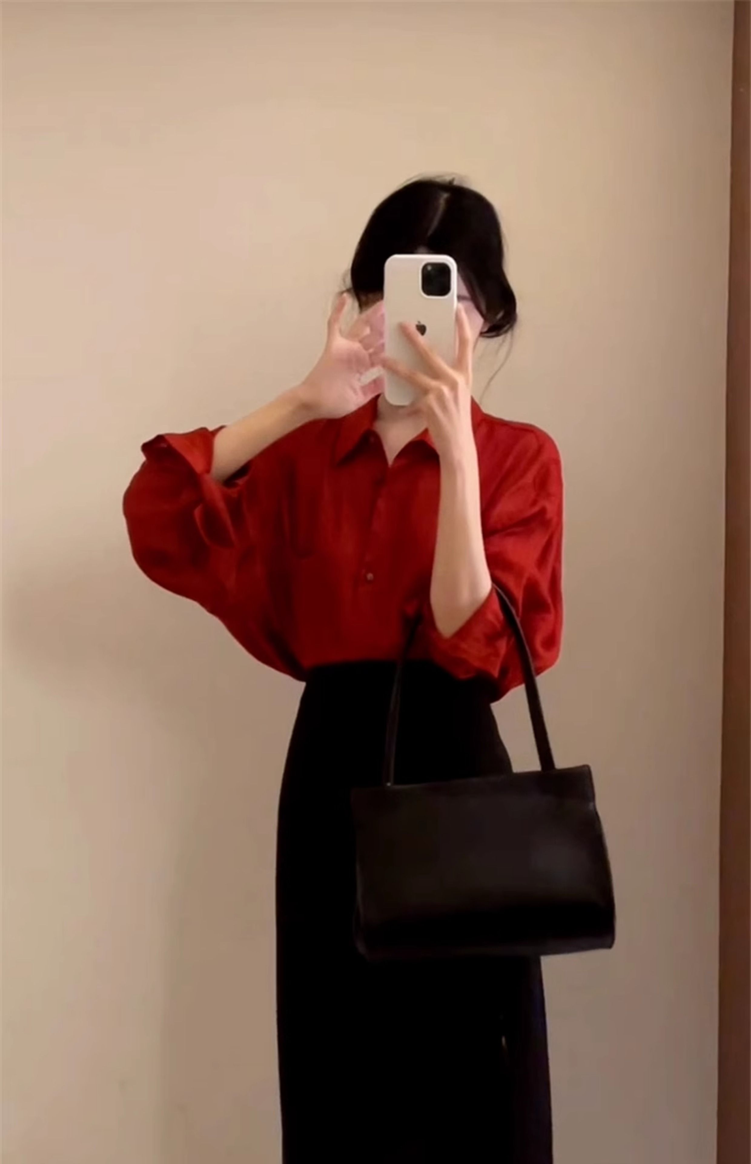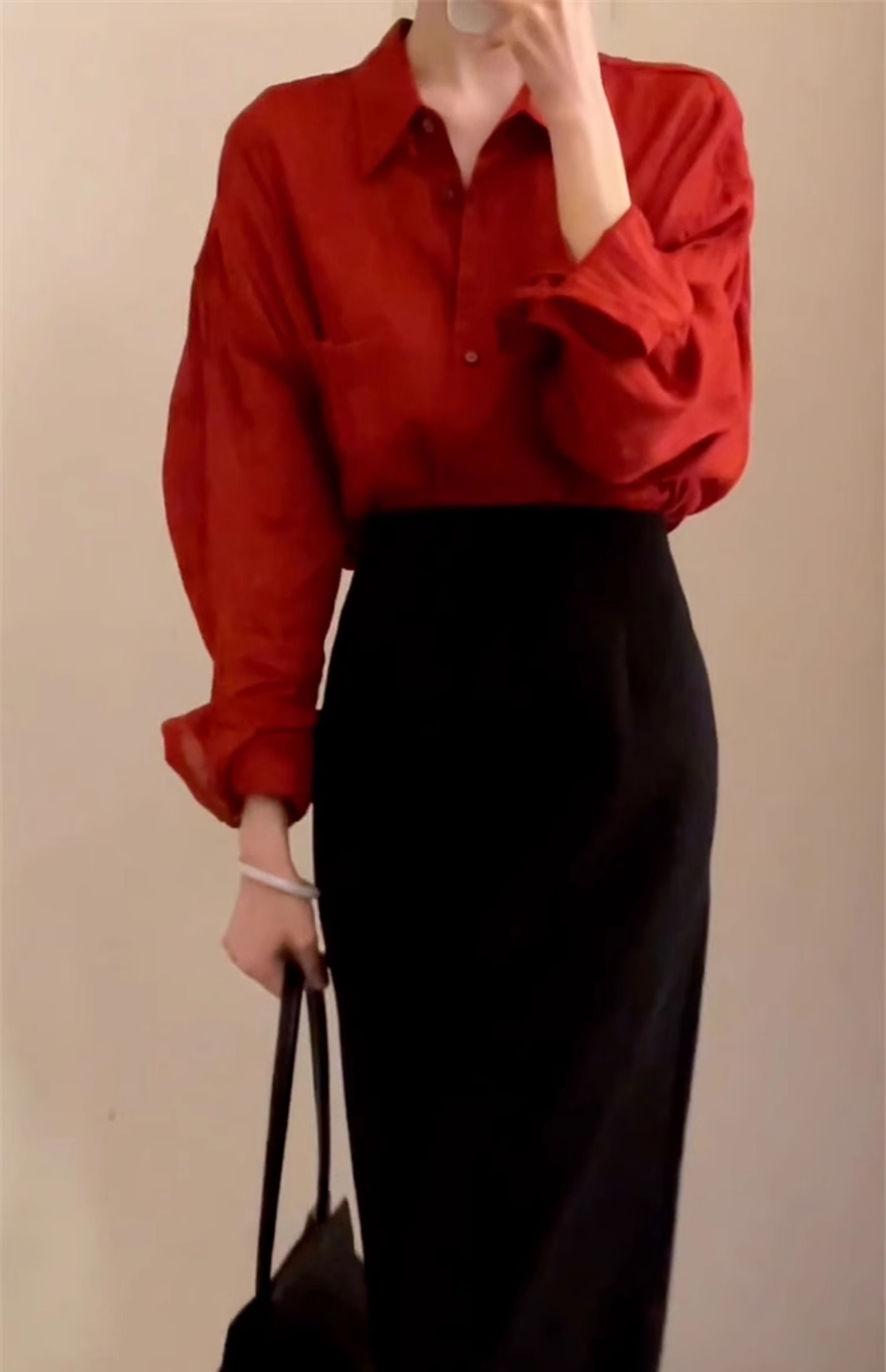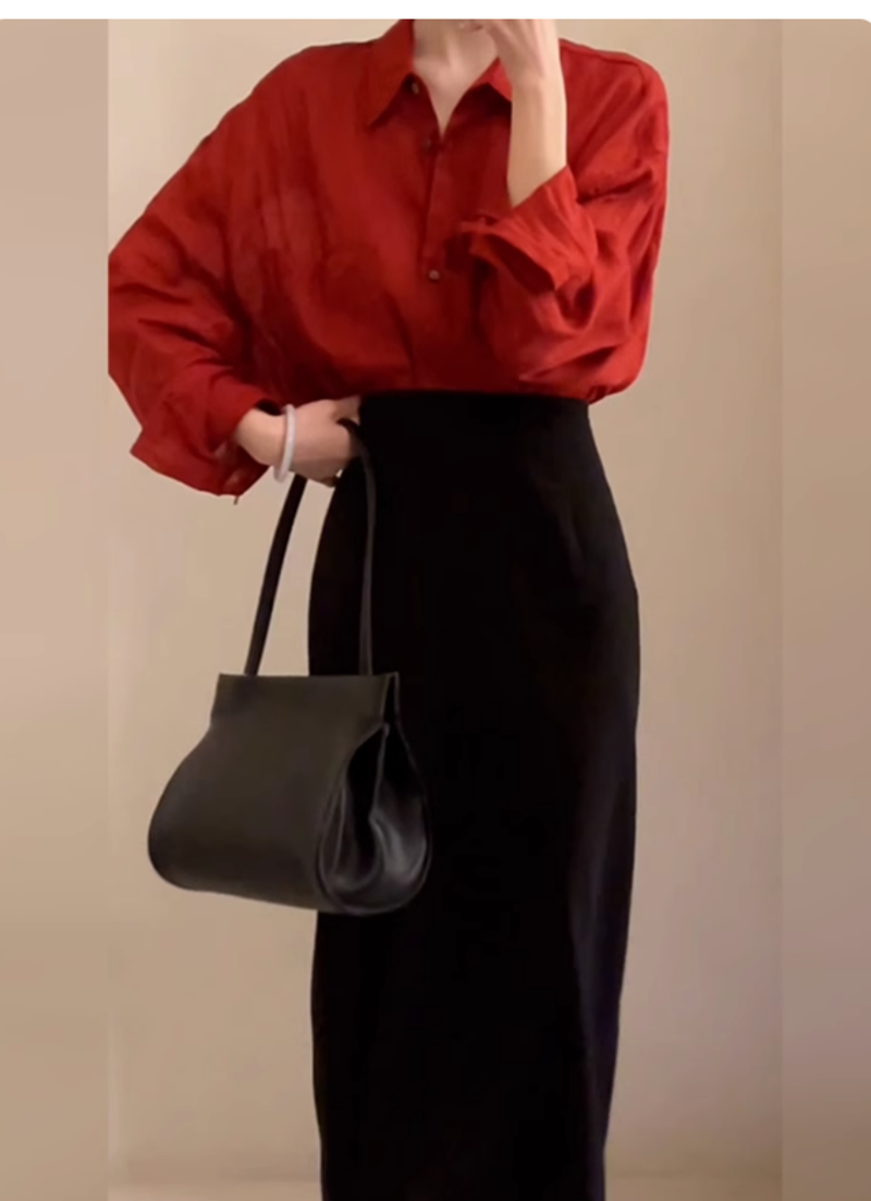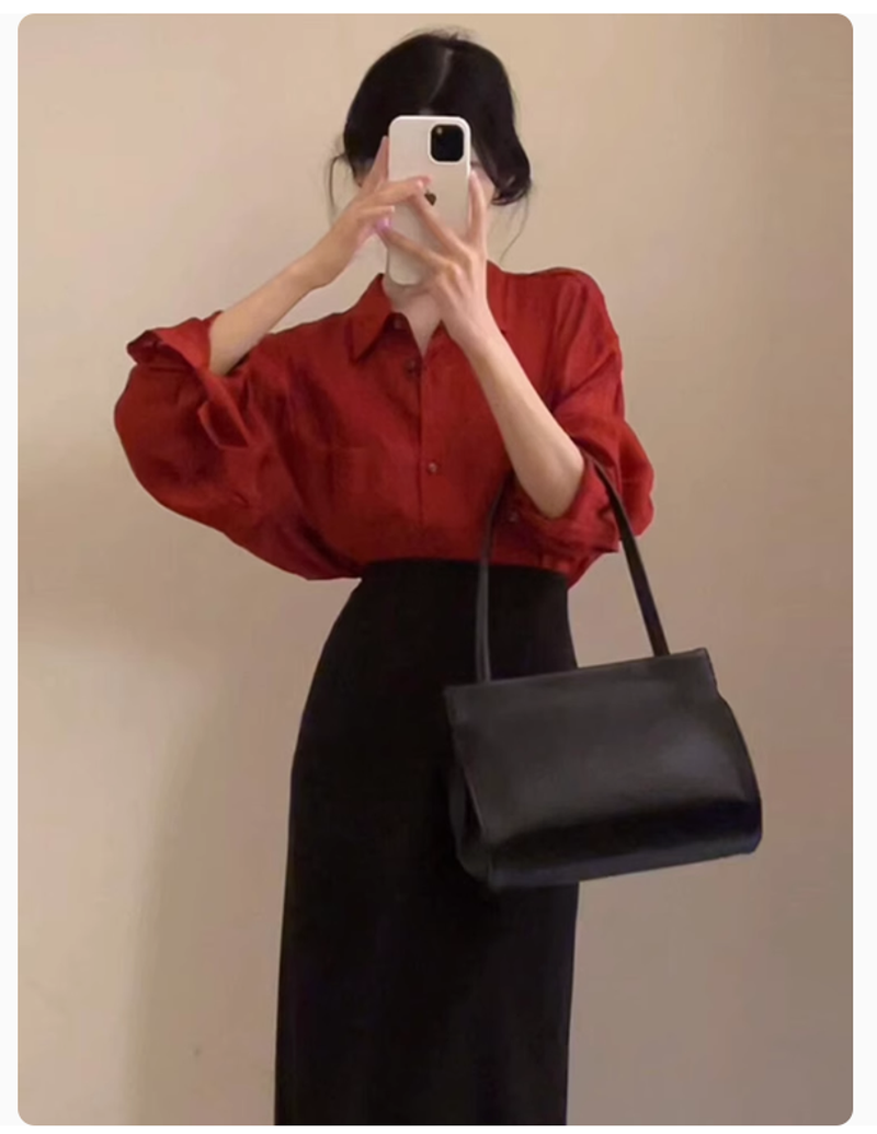 法式紅色襯衫連衣裙子女2025新爆款開春季氣質穿搭一整套包臀長裙