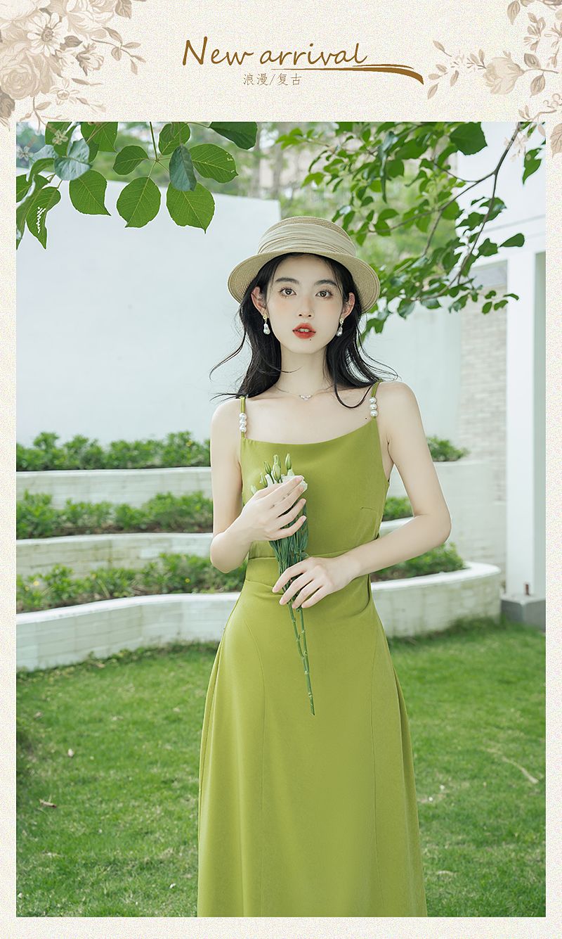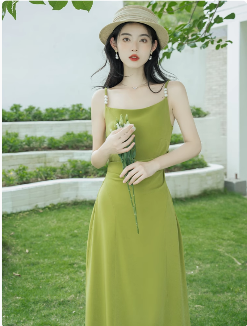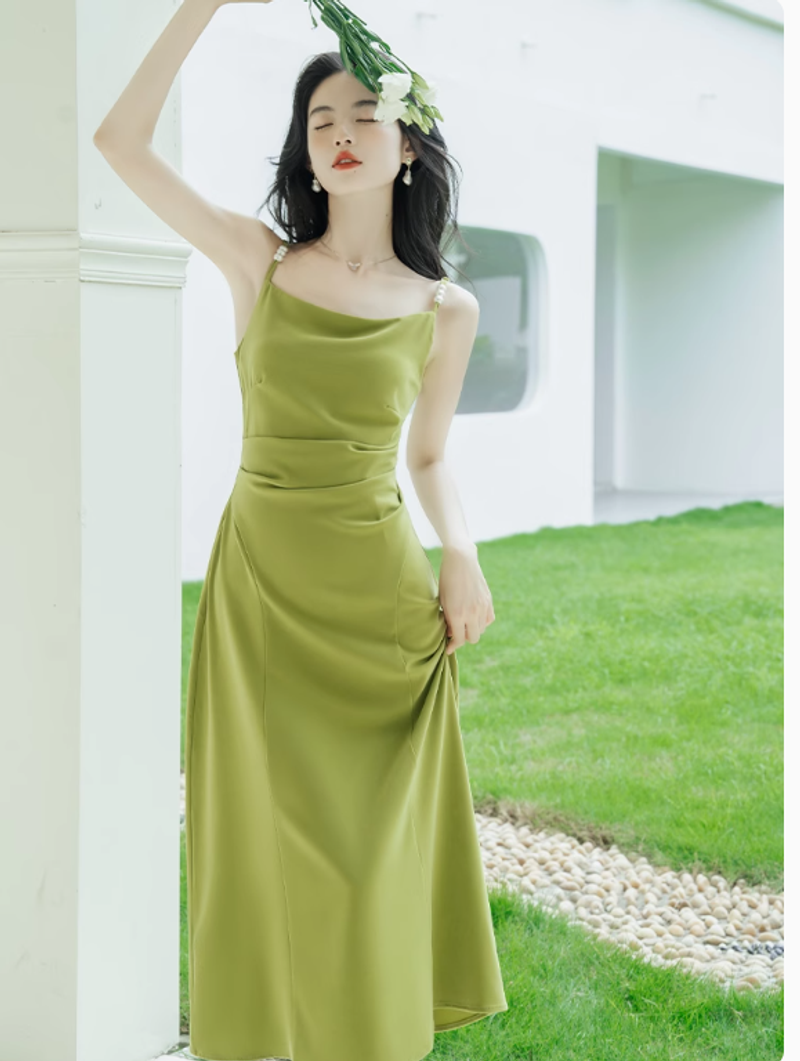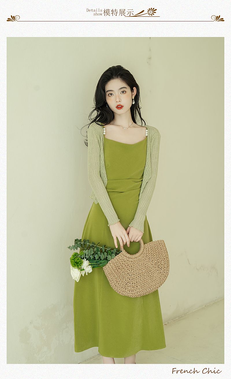法式綠色連衣裙夏季2025新款高級感氣質絕美超仙吊帶開衫兩件套裝