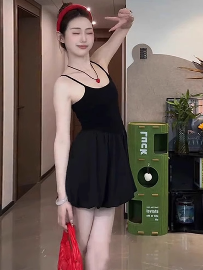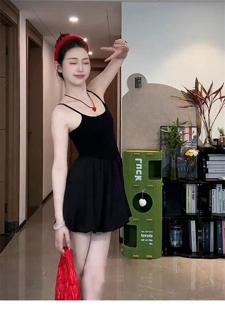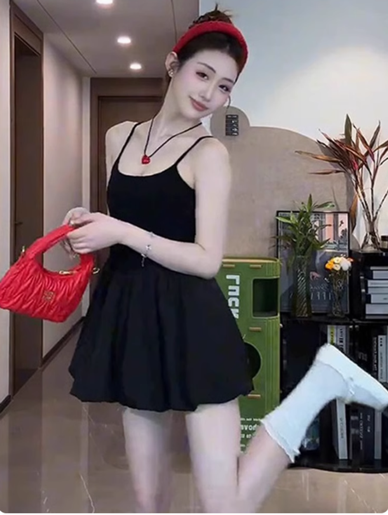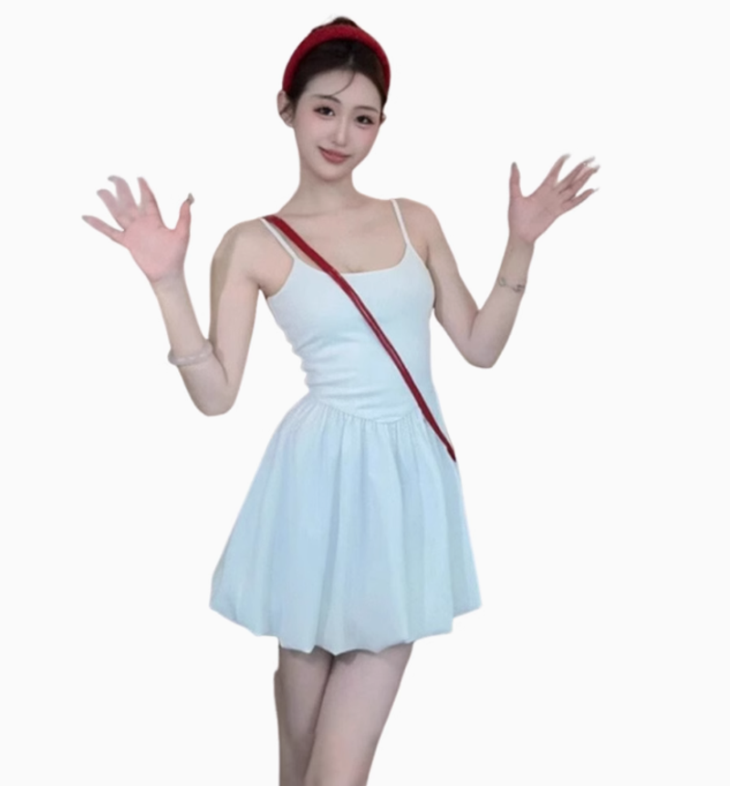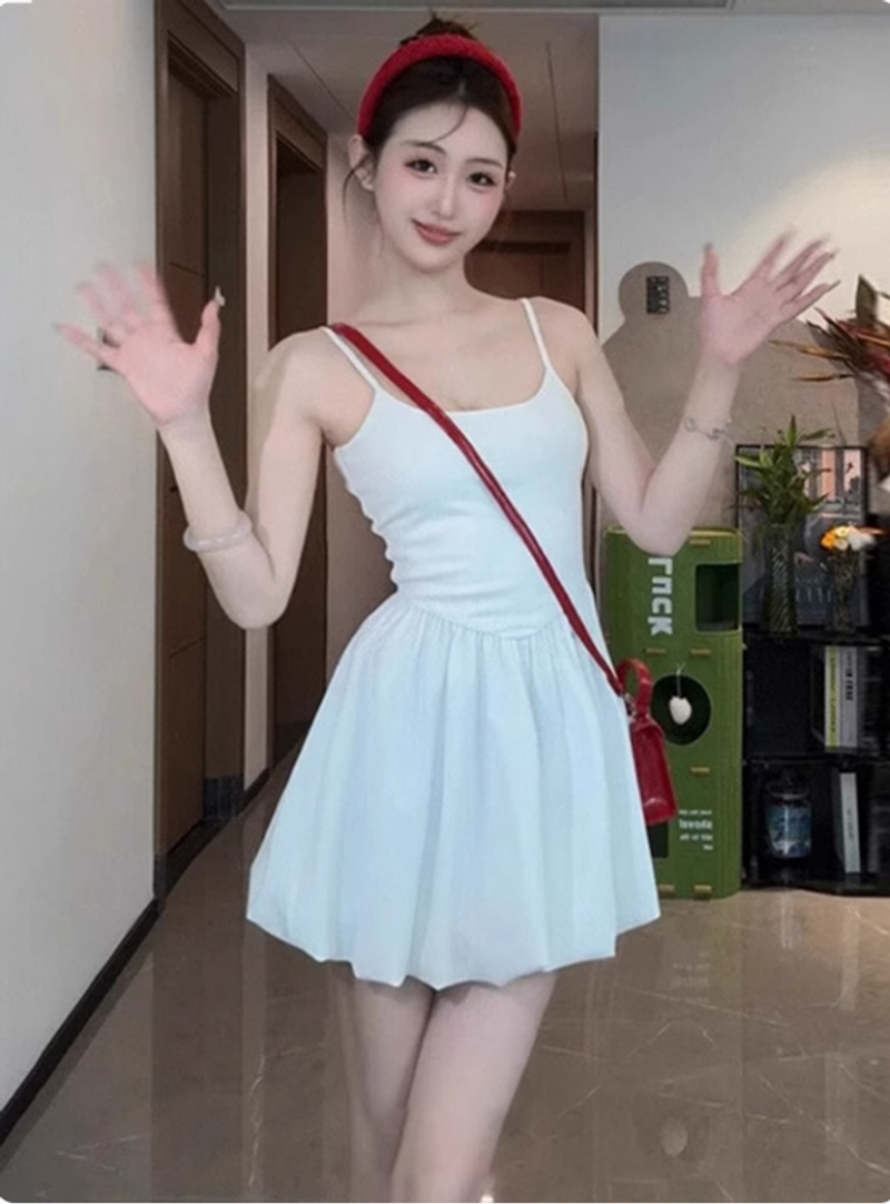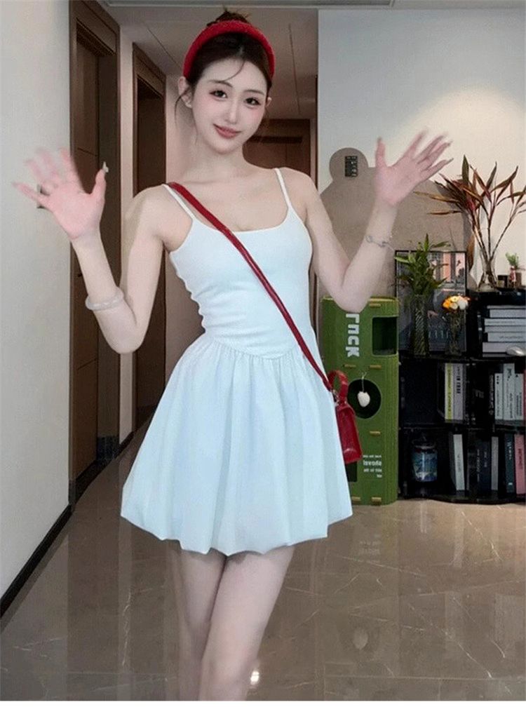 法式芭蕾短裙度假白色吊帶連衣裙子女夏季2025新款蓬蓬花苞公主裙