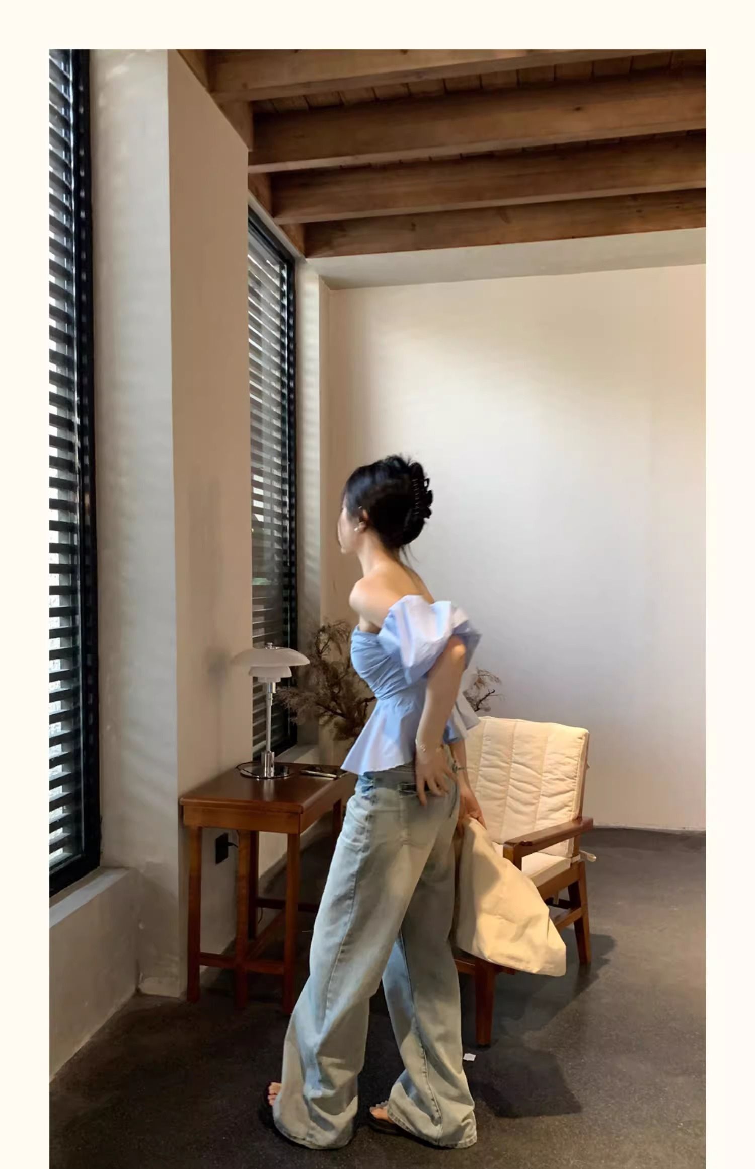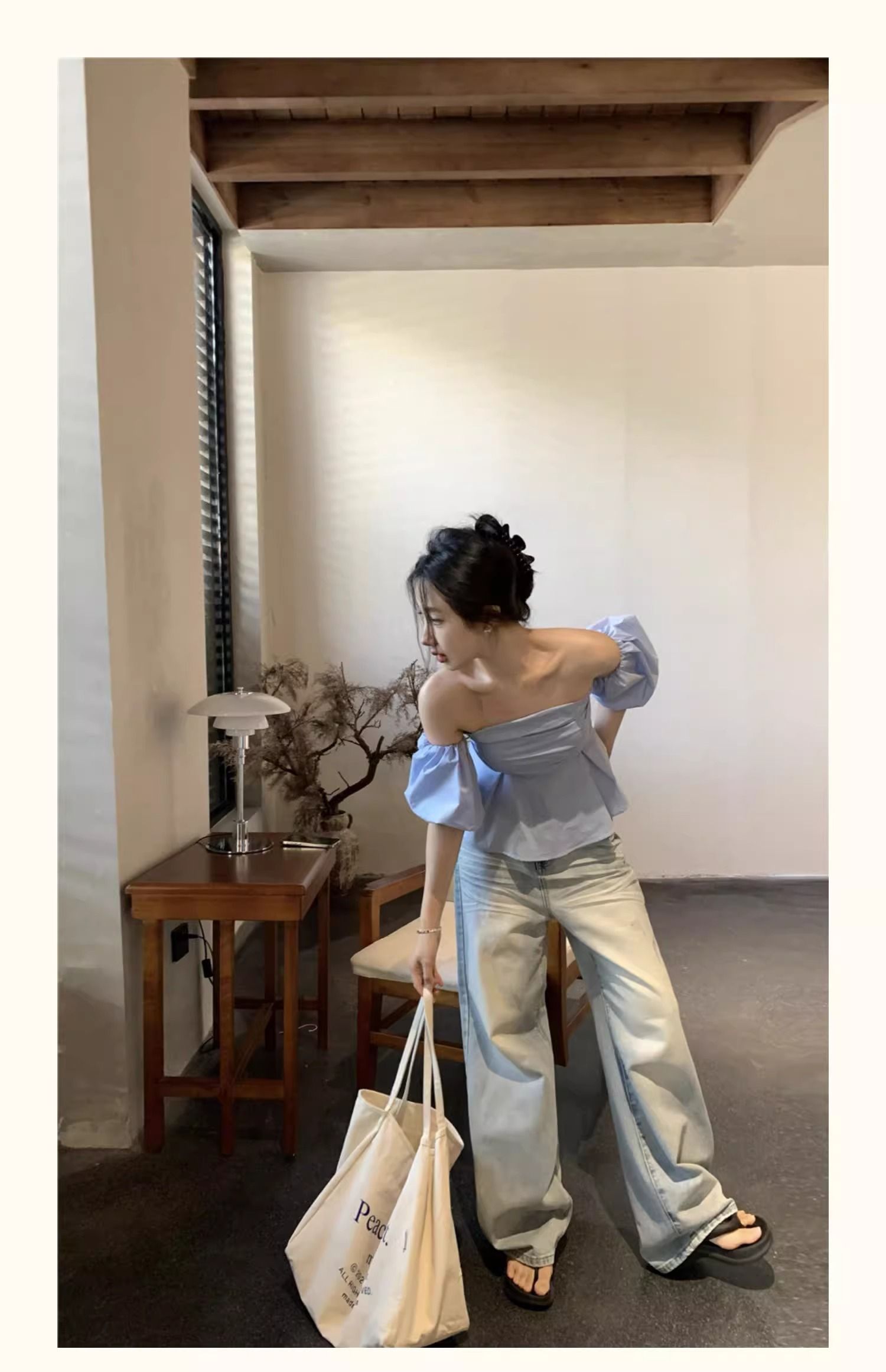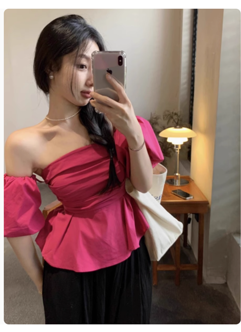 法式設計感一字領泡泡袖抹胸襯衫女夏高級感小衆褶皺顯瘦別緻上衣