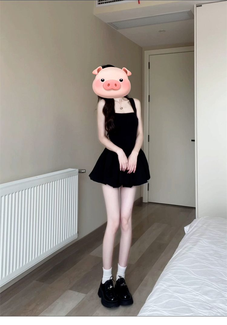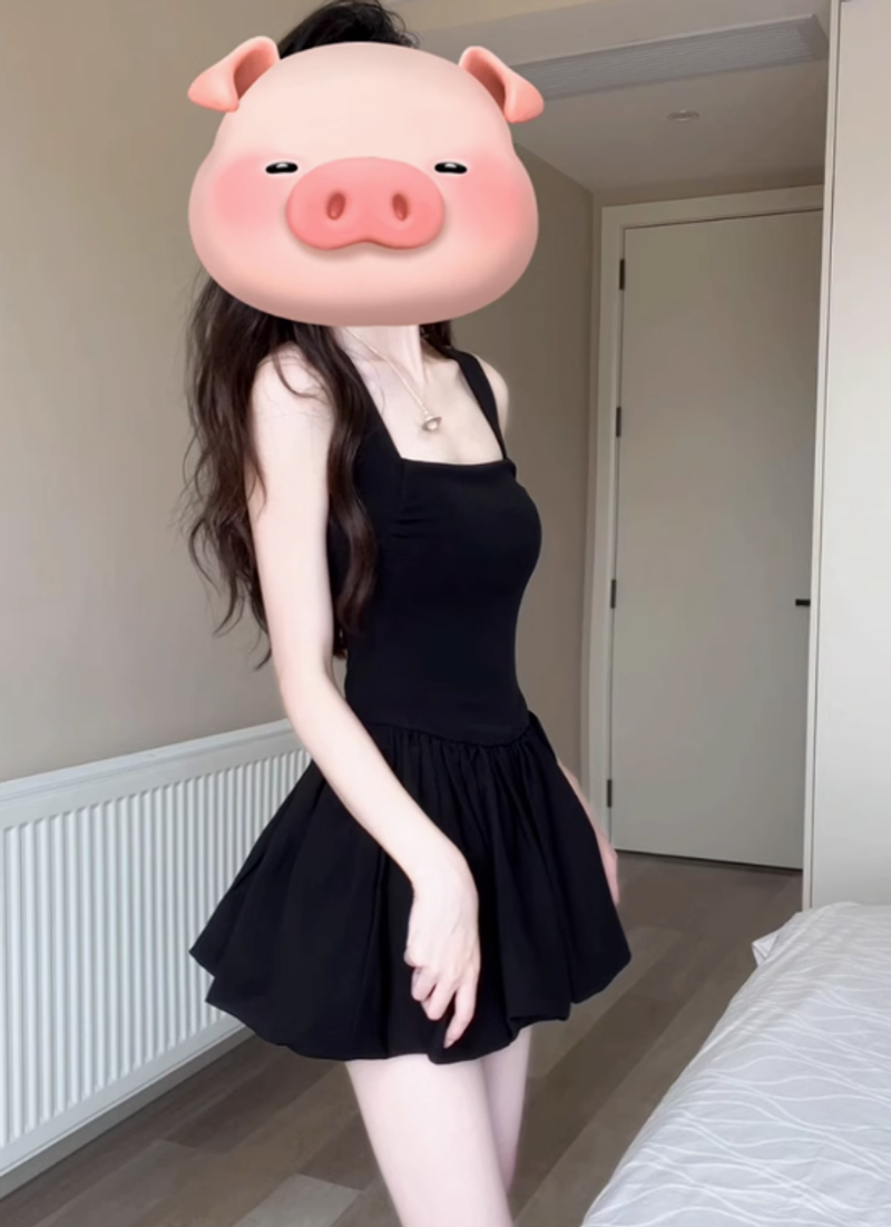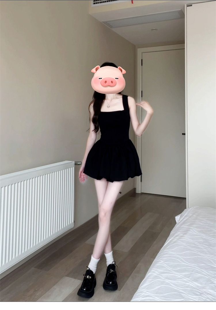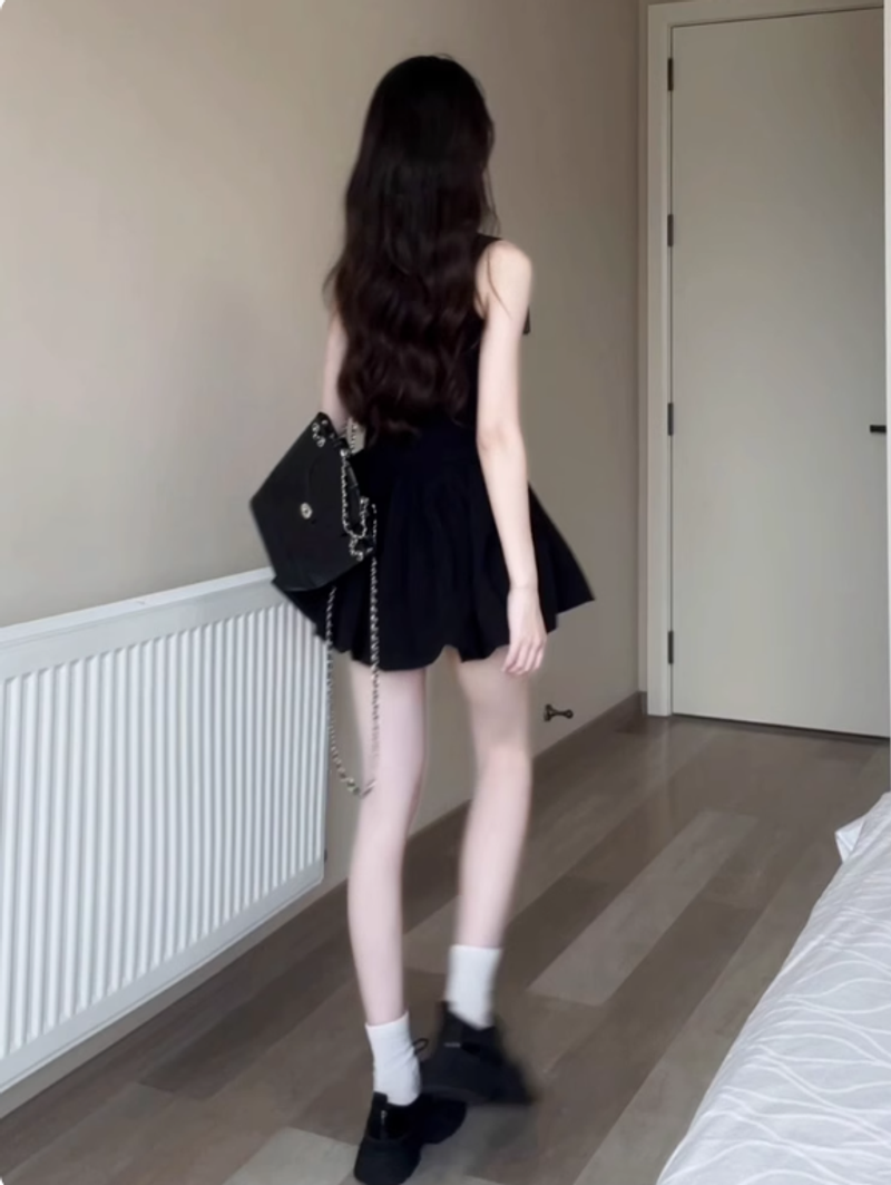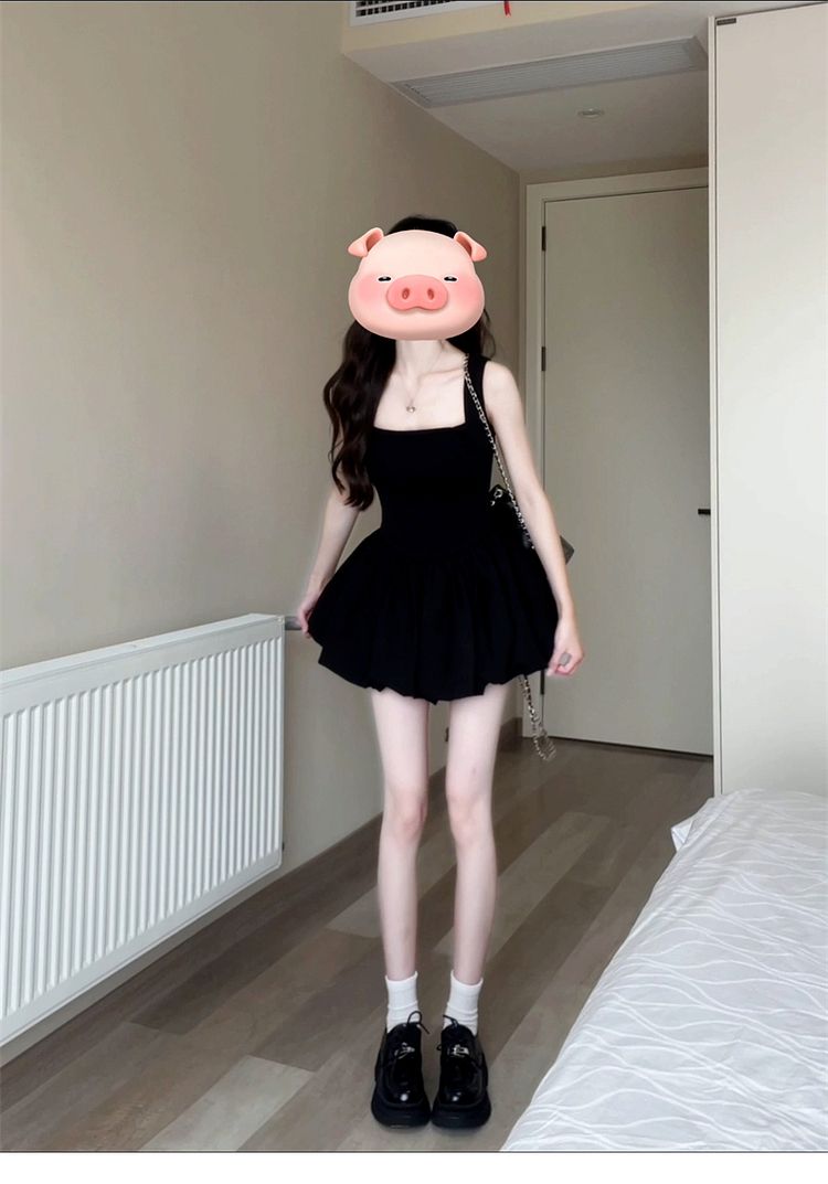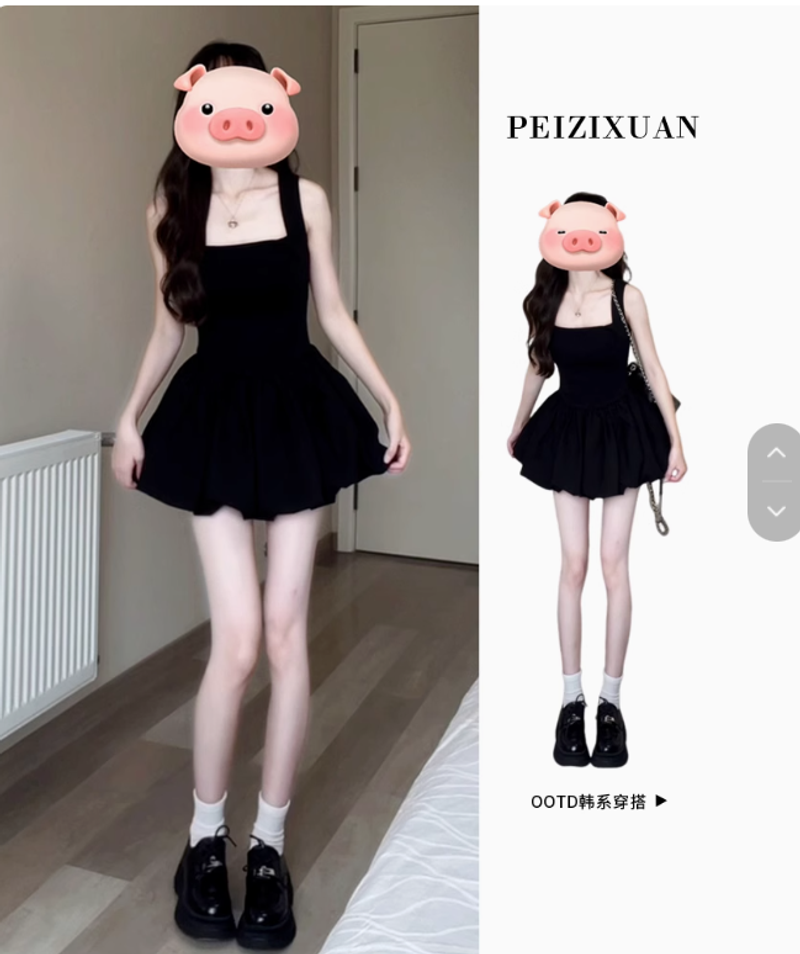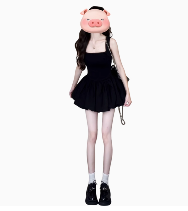 法式赫本風黑色吊帶連衣裙子女夏季2025新款小個子氣質蓬蓬小黑裙