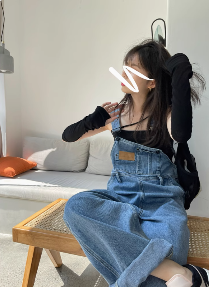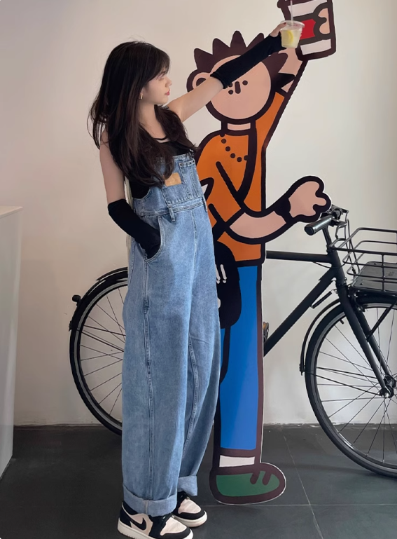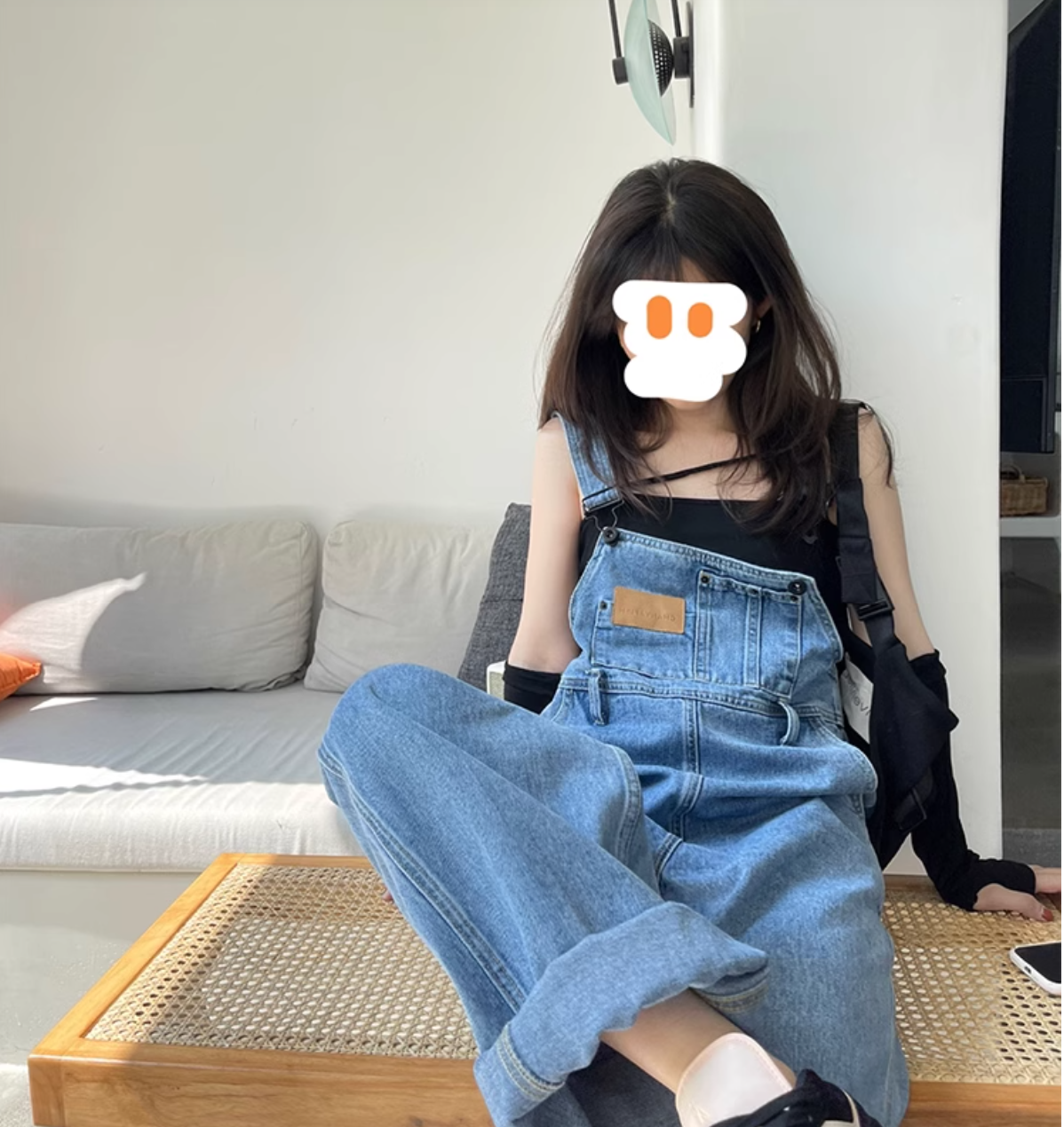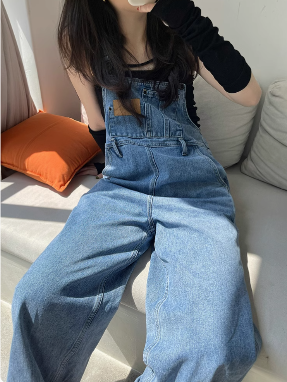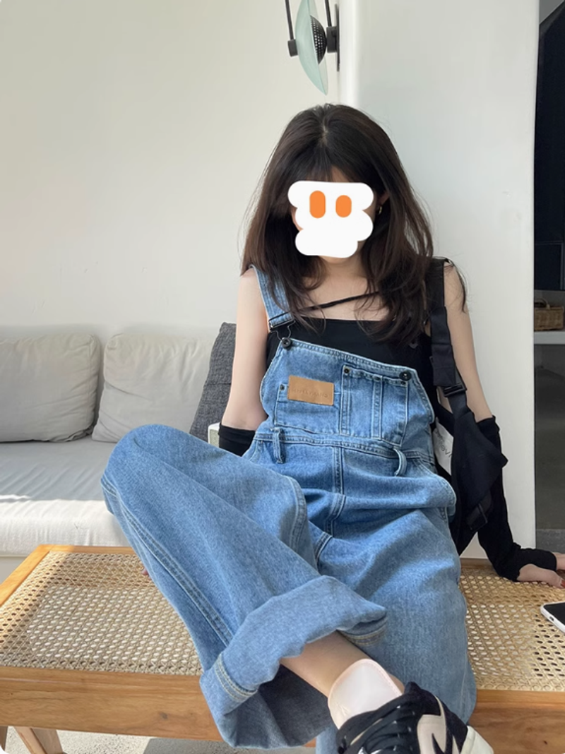 牛仔背帶褲夏季女顯瘦網紅炸街夏款減齡寬松美式復古闊腿拖地長褲