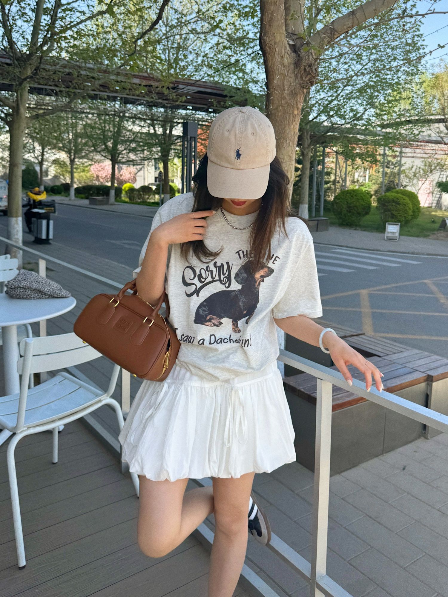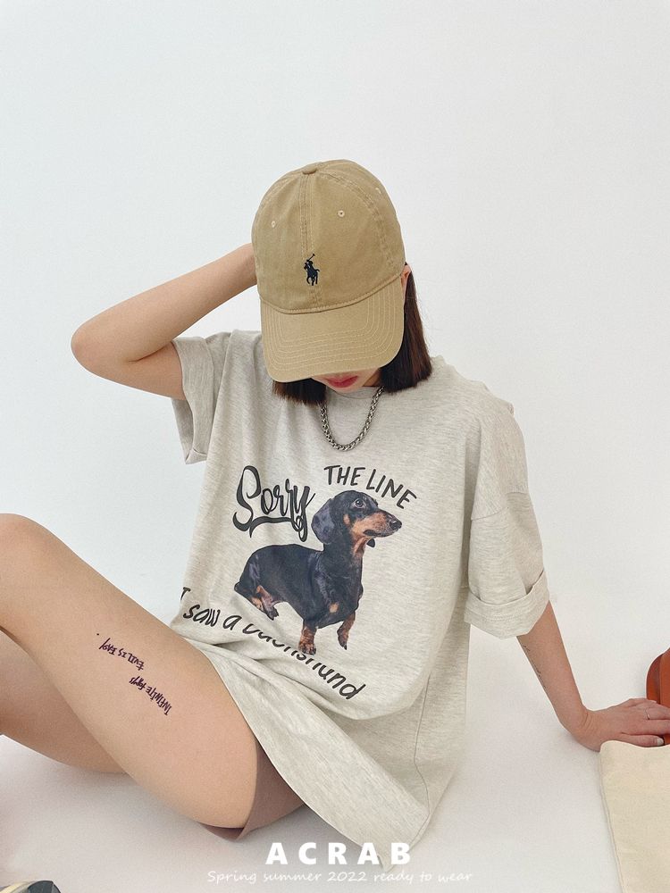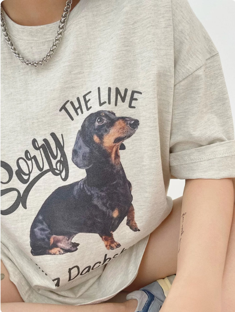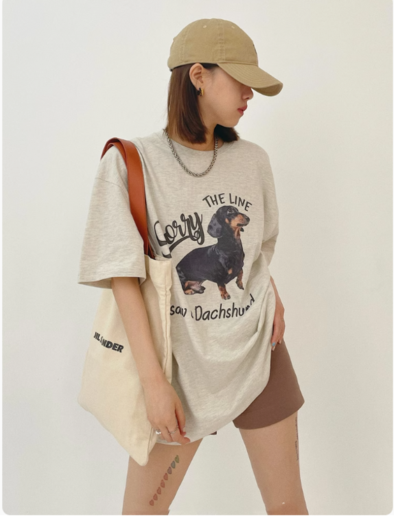 現貨Acrab女裝夏季度假美式復古臘腸狗寬鬆純棉狗狗短袖T恤女