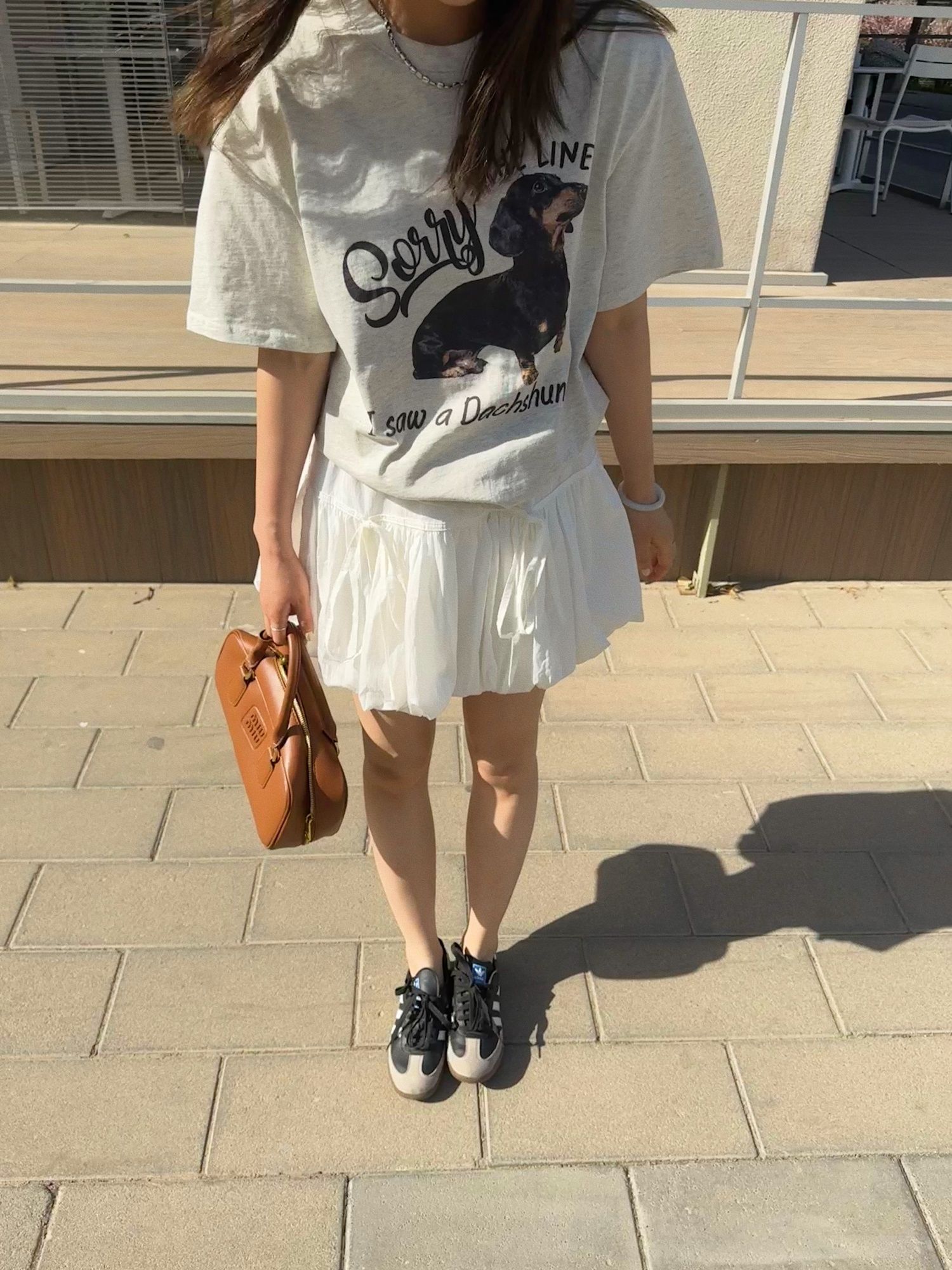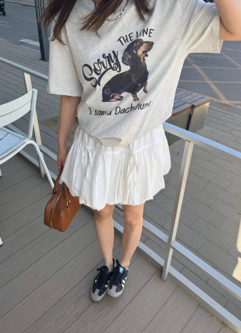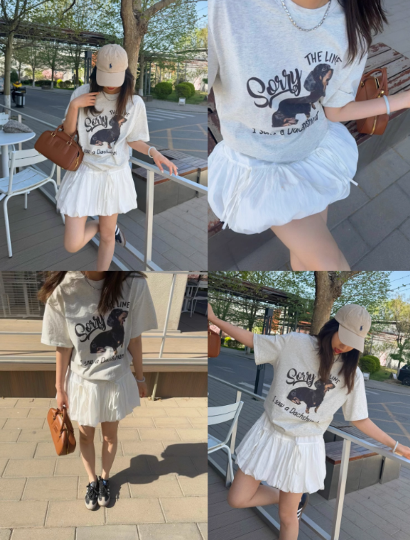 現貨Acrab女裝夏季度假美式復古臘腸狗寬鬆純棉狗狗短袖T恤女
