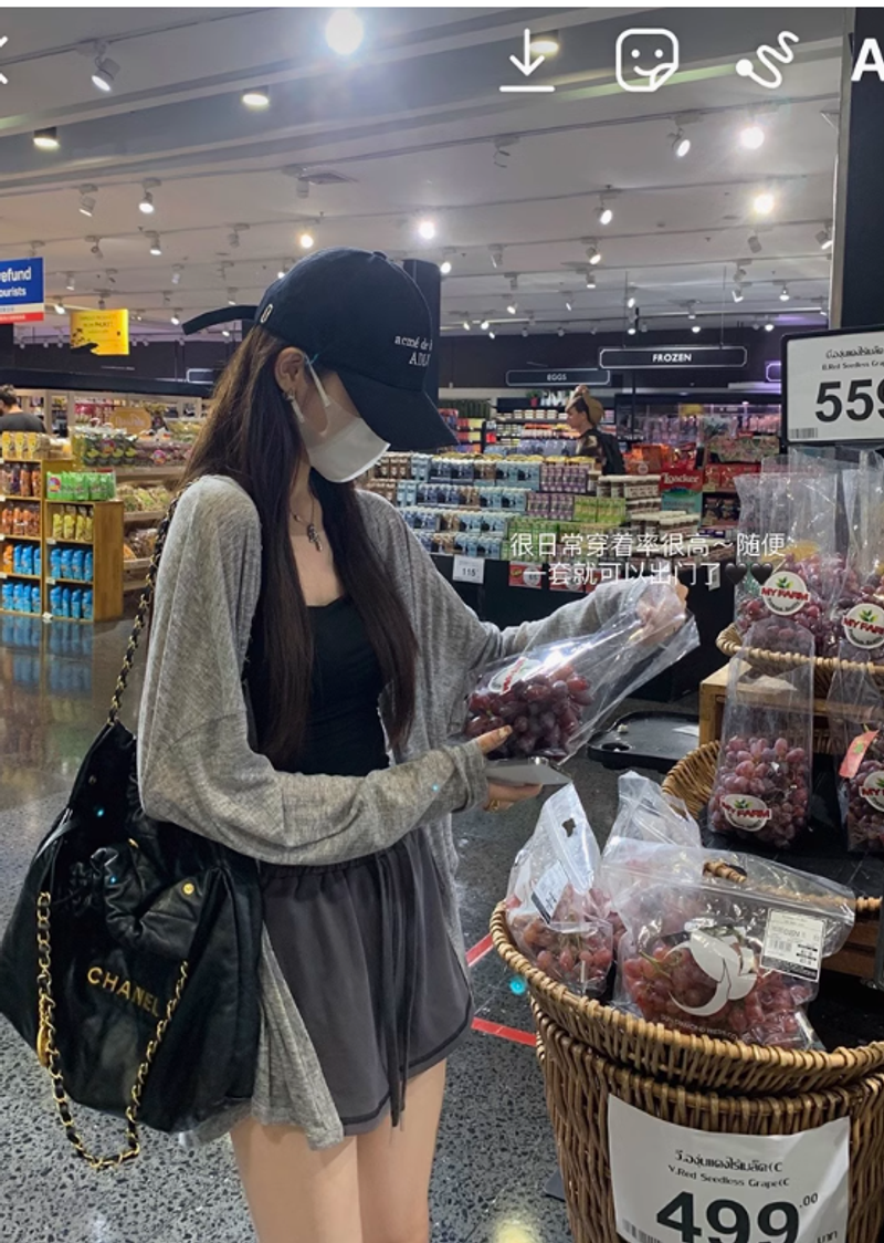 白水女慵懶美女獨特別緻設計防曬開衫外搭薄款罩衫灰色上衣