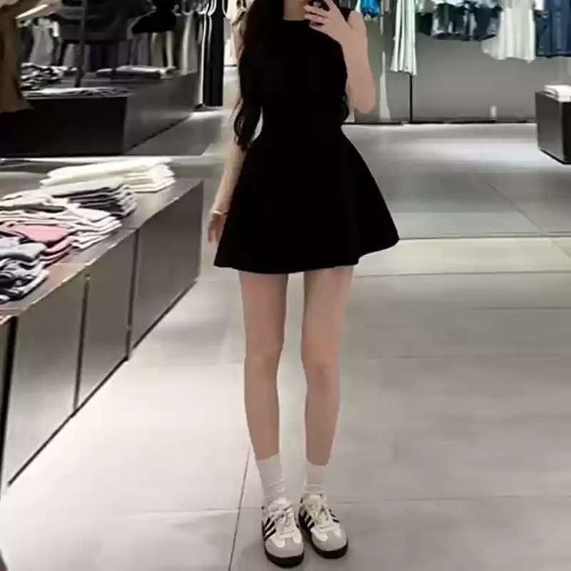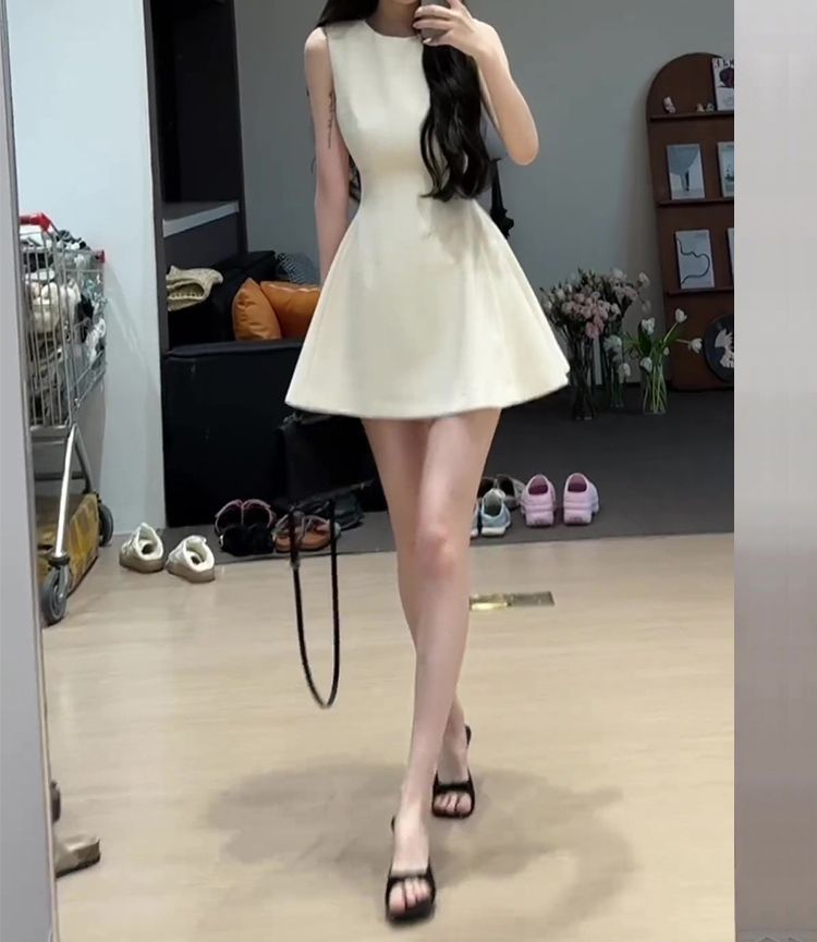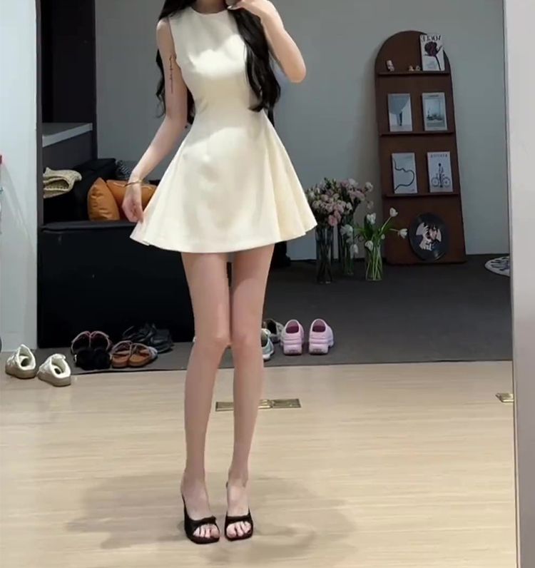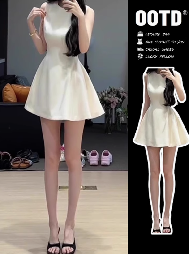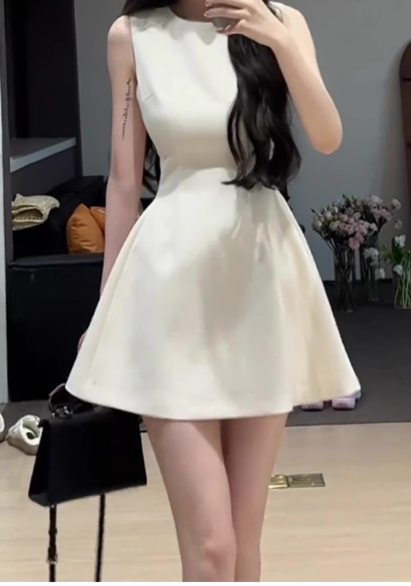 白色御姐風高級感收腰a字裙2025新款無袖設計感法式連衣裙子女夏