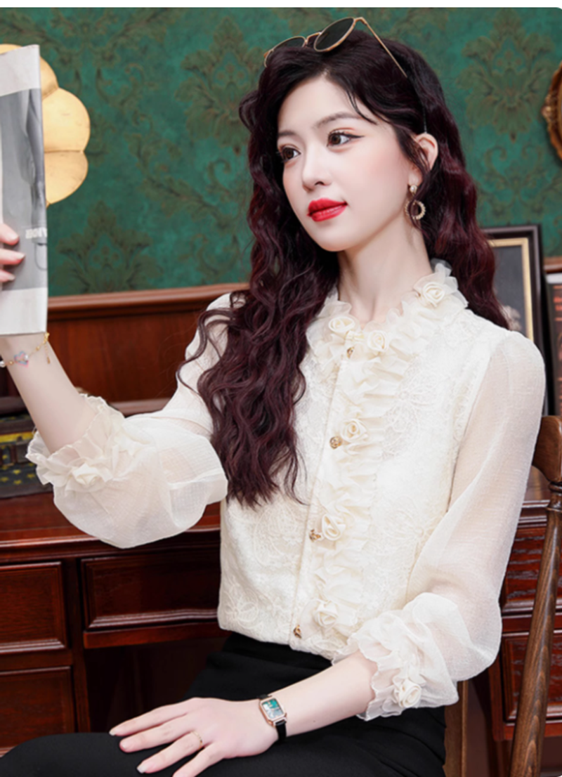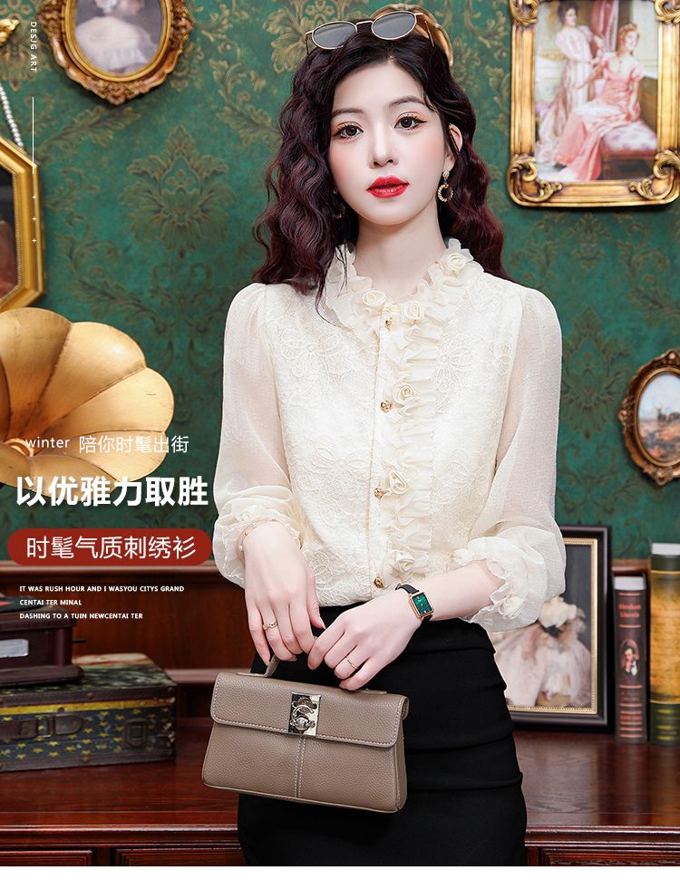 真絲襯衫女士長袖小衫洋氣2025春新款時尚刺繡桑蠶絲上衣