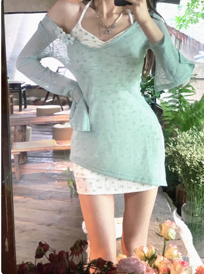 短款碎花吊帶連衣裙女春夏新款防曬罩衫兩件套顯瘦
