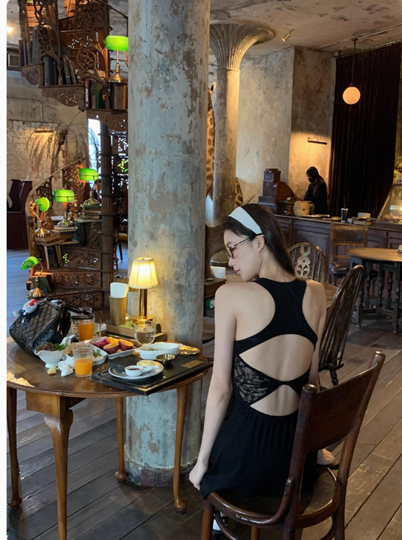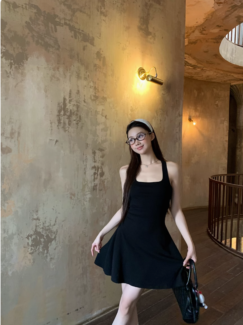 紅人館法式連衣裙女夏季2025超火新款吊帶黑色修身a字高級感裙子