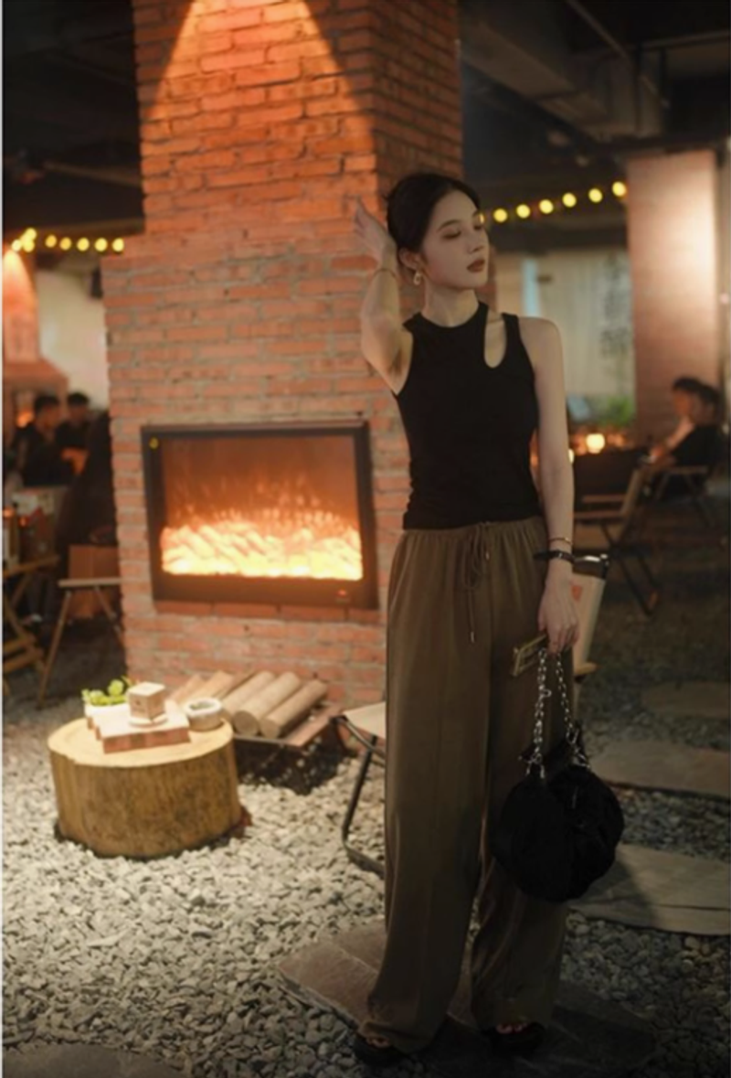 紅色背心掛脖吊帶女別致西裝內搭無袖T恤時尚設計感小衆打底上衣