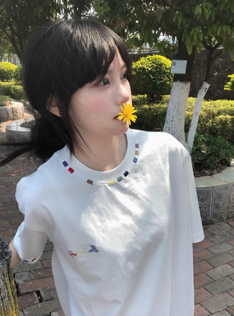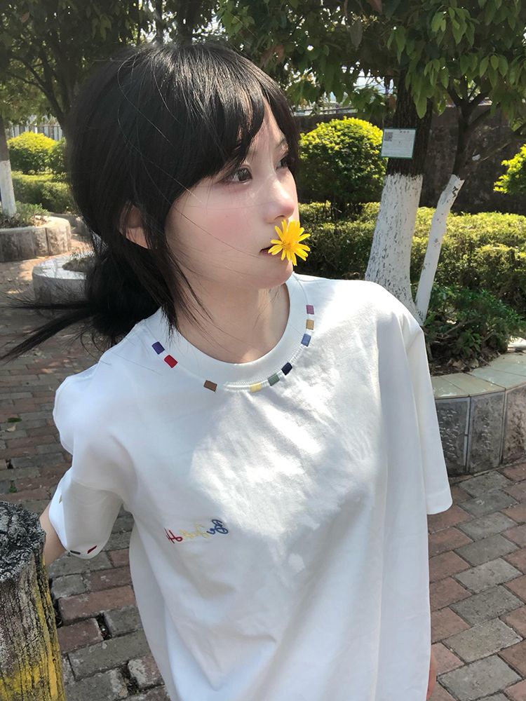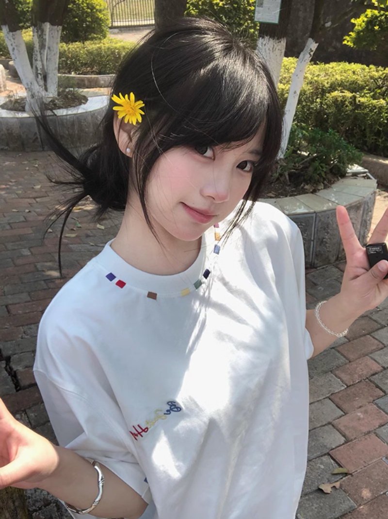 美式復古高街刺繡短袖t恤女2025夏季新款寬松設計感小衆半袖上衣