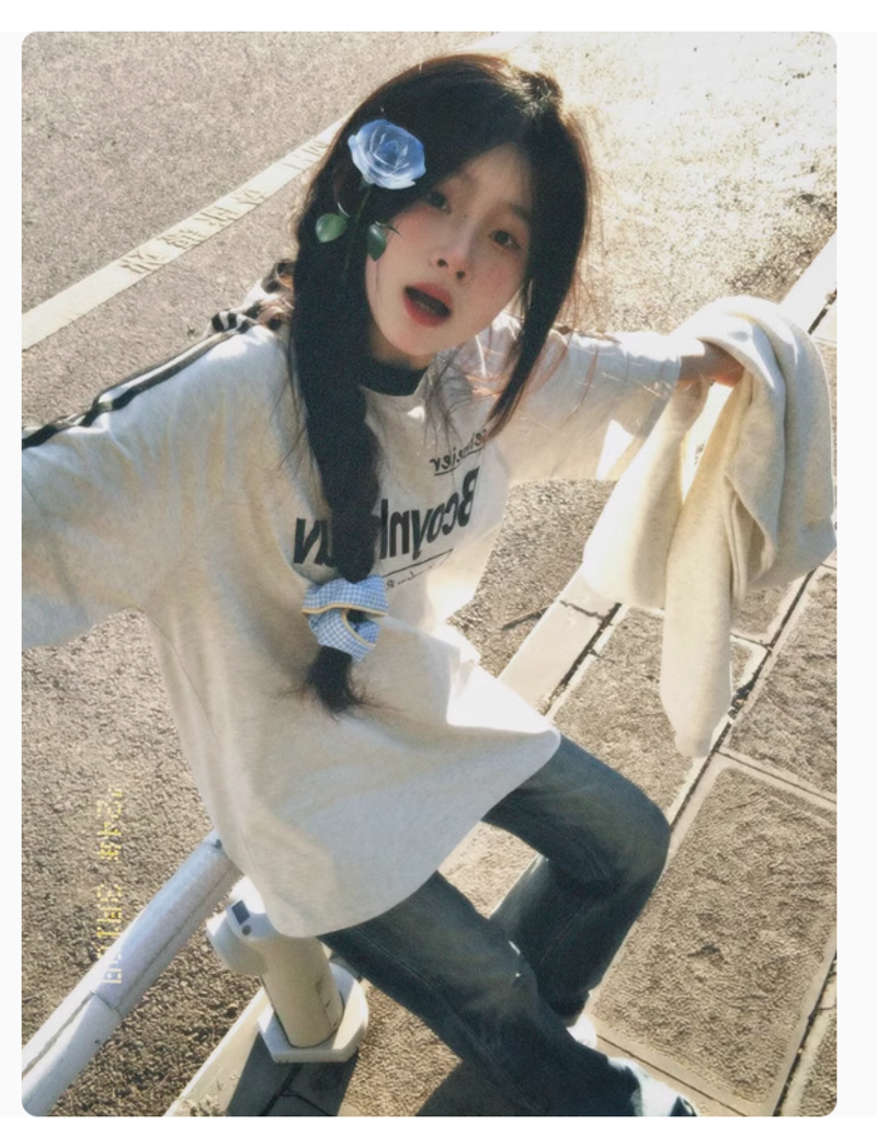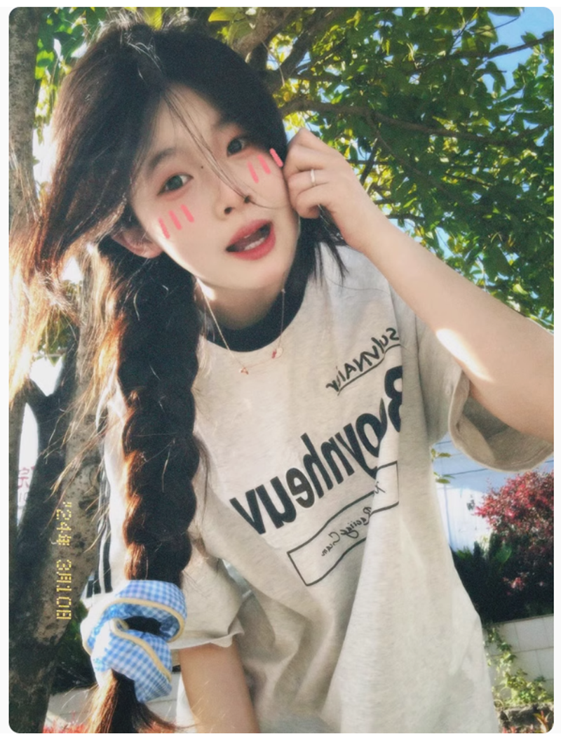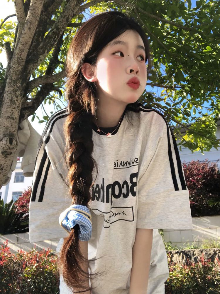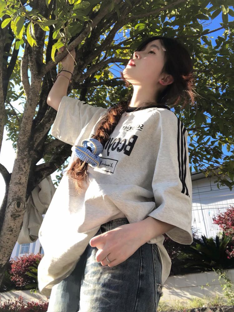 美式撞色短袖t恤女夏季國潮復古oversize學院風條紋插肩半袖上衣