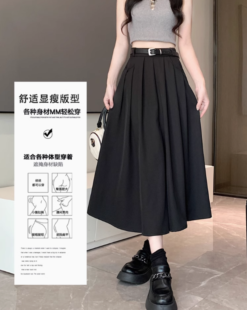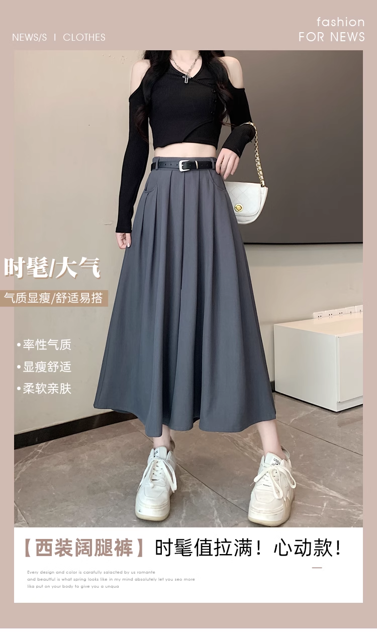 裙裤女夏款2025新款爆款高腰百褶八分阔腿裤小个子西装裤裙二合一