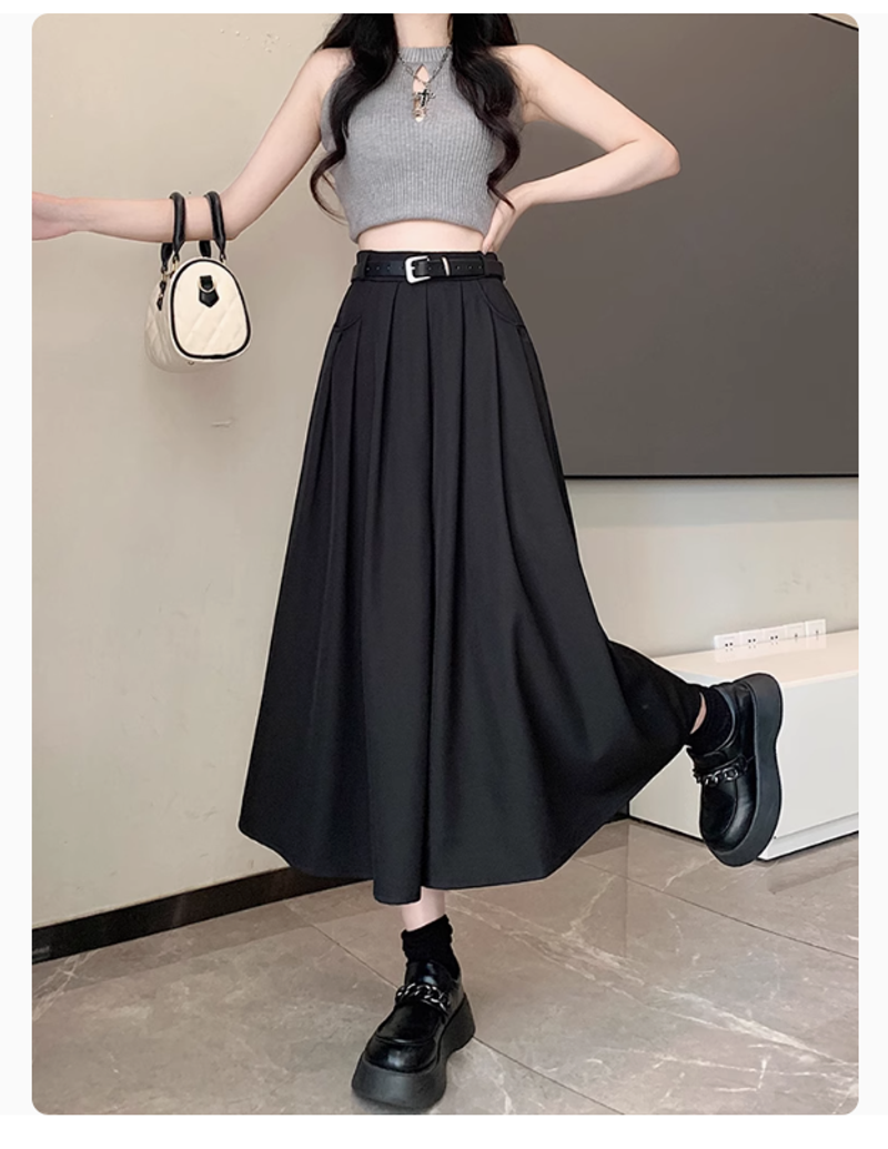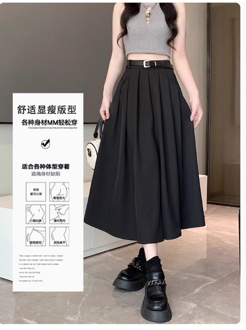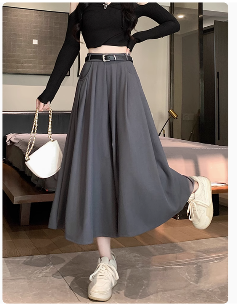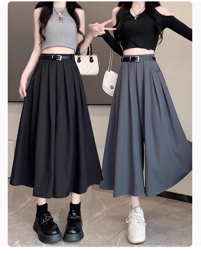 裙褲女夏款2025新款爆款高腰百褶八分闊腿褲小個子西裝褲裙二合一