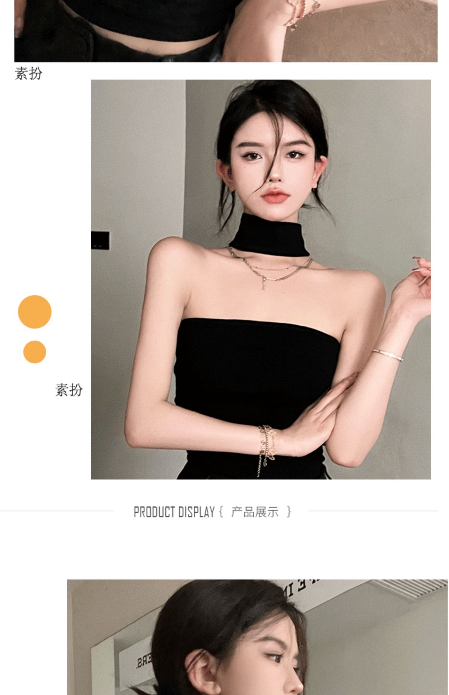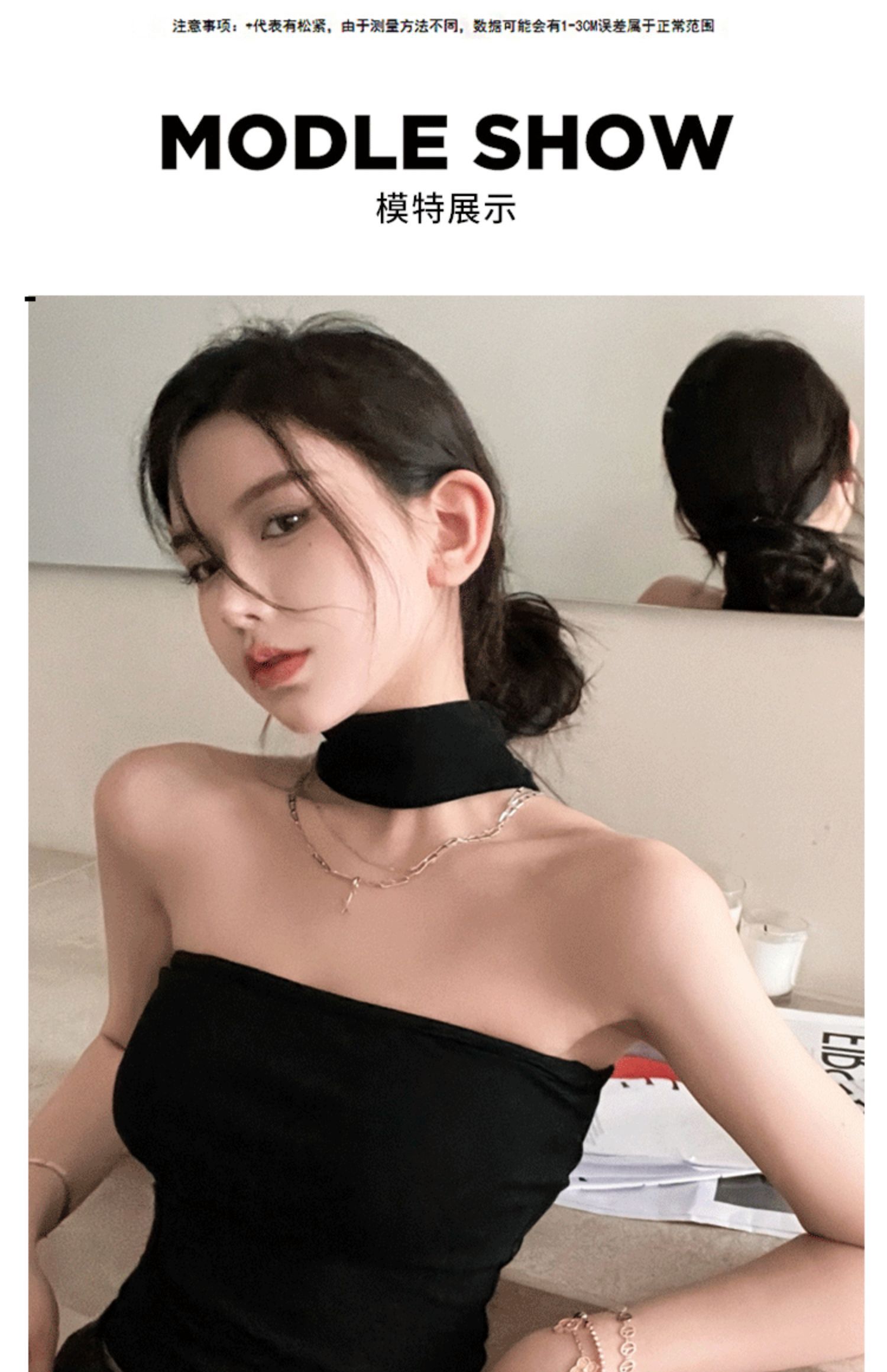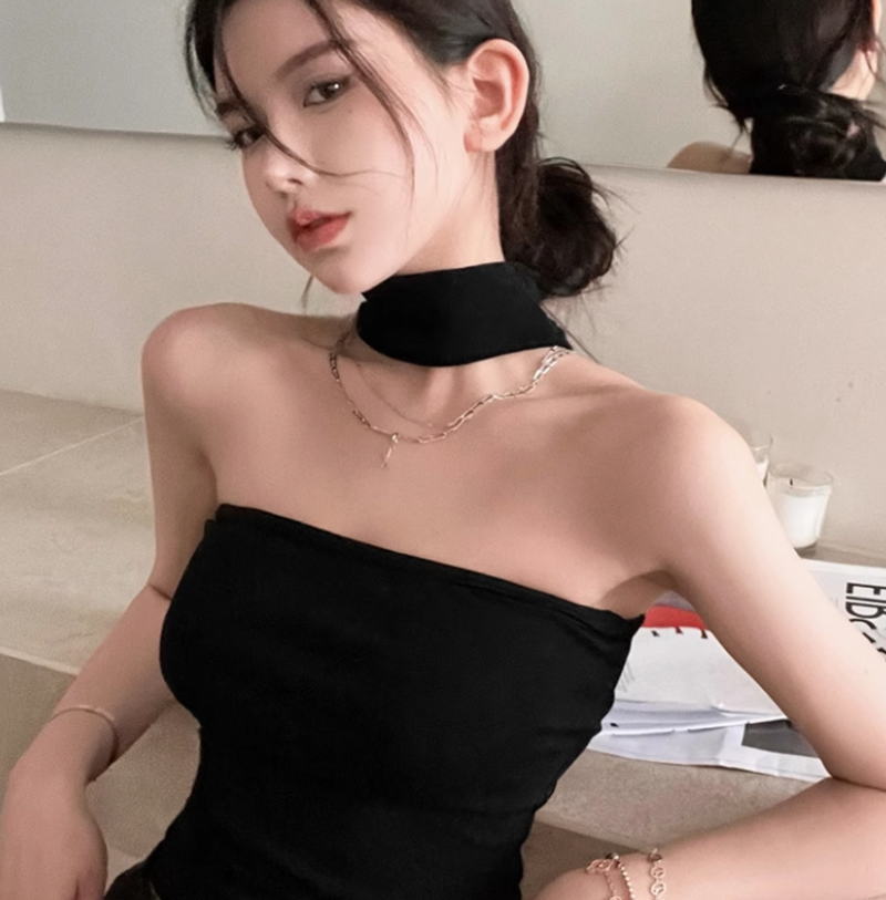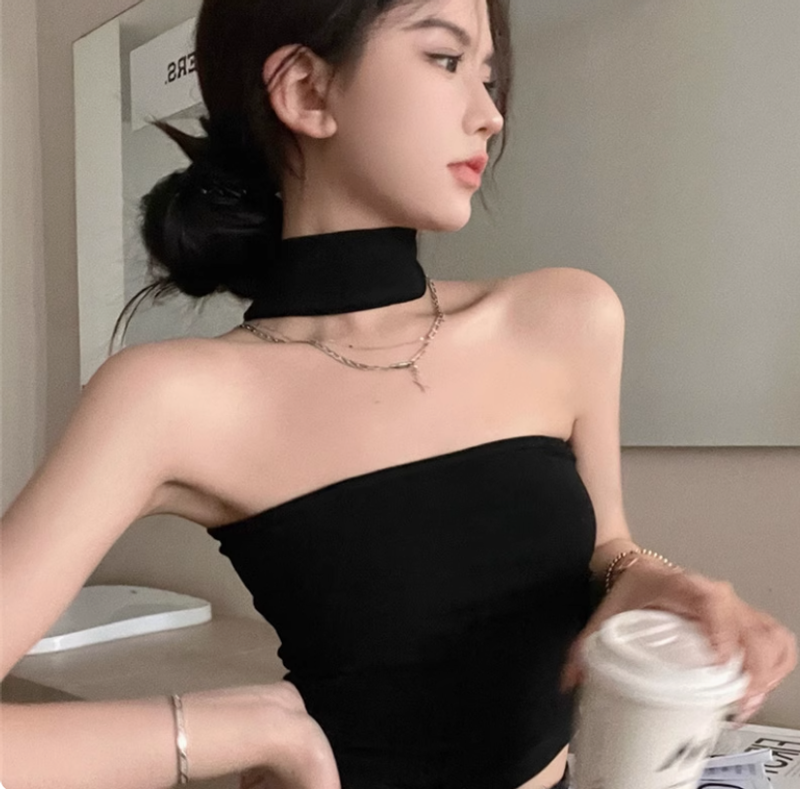 辣妹黑色掛脖吊帶背心女內搭外穿抹胸裹一字肩修身純欲性感短上衣