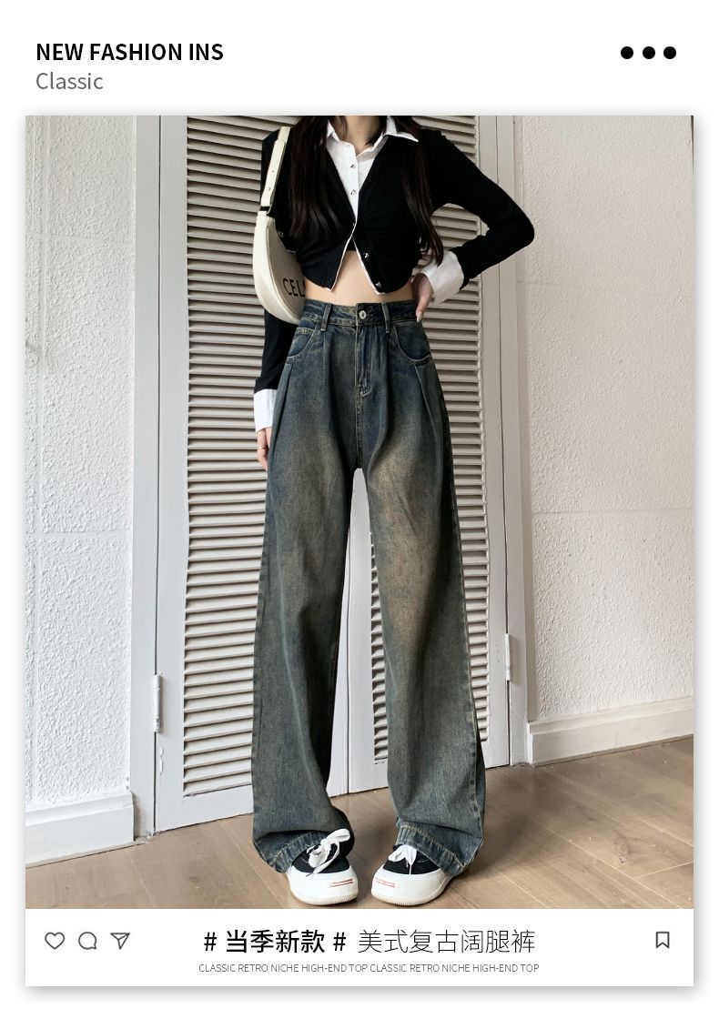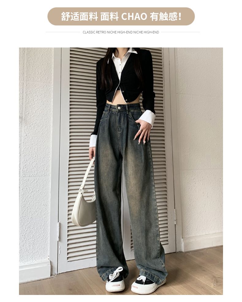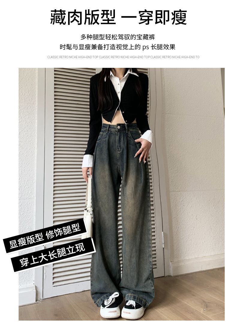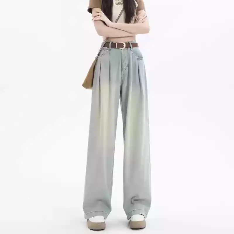 韓都衣舍闊腿牛仔褲女2025新款小個子高腰寬鬆垂感直筒褲子春秋款