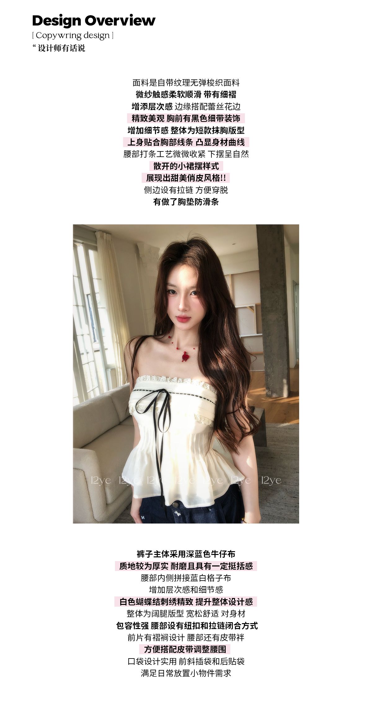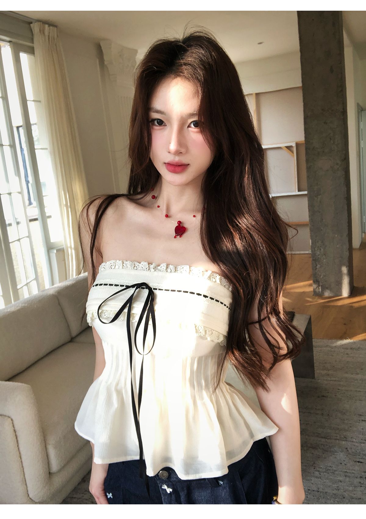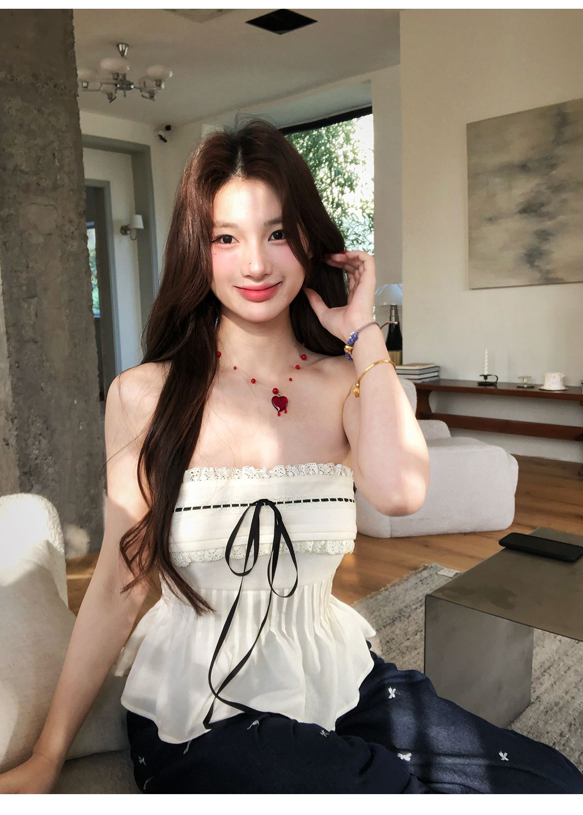 12YE 辣妹抹胸上衣女夏季性感花邊設計感小衆胸墊短款背心吊帶
