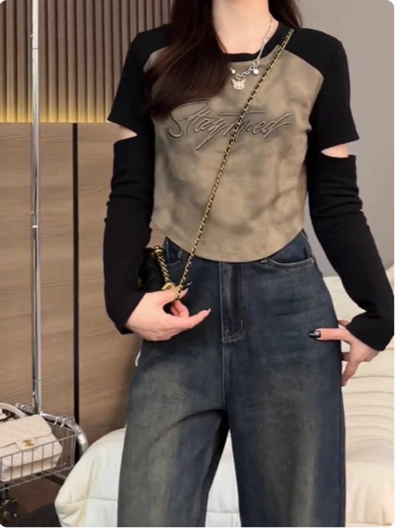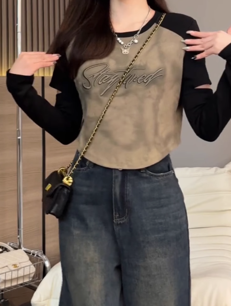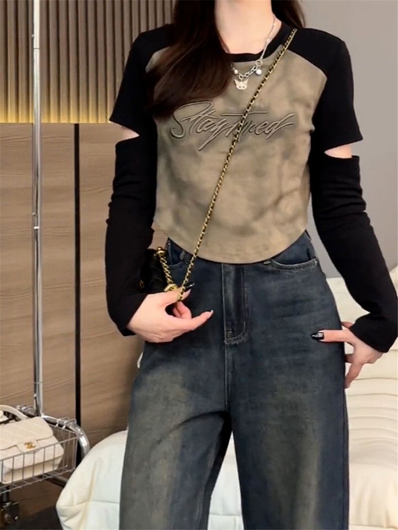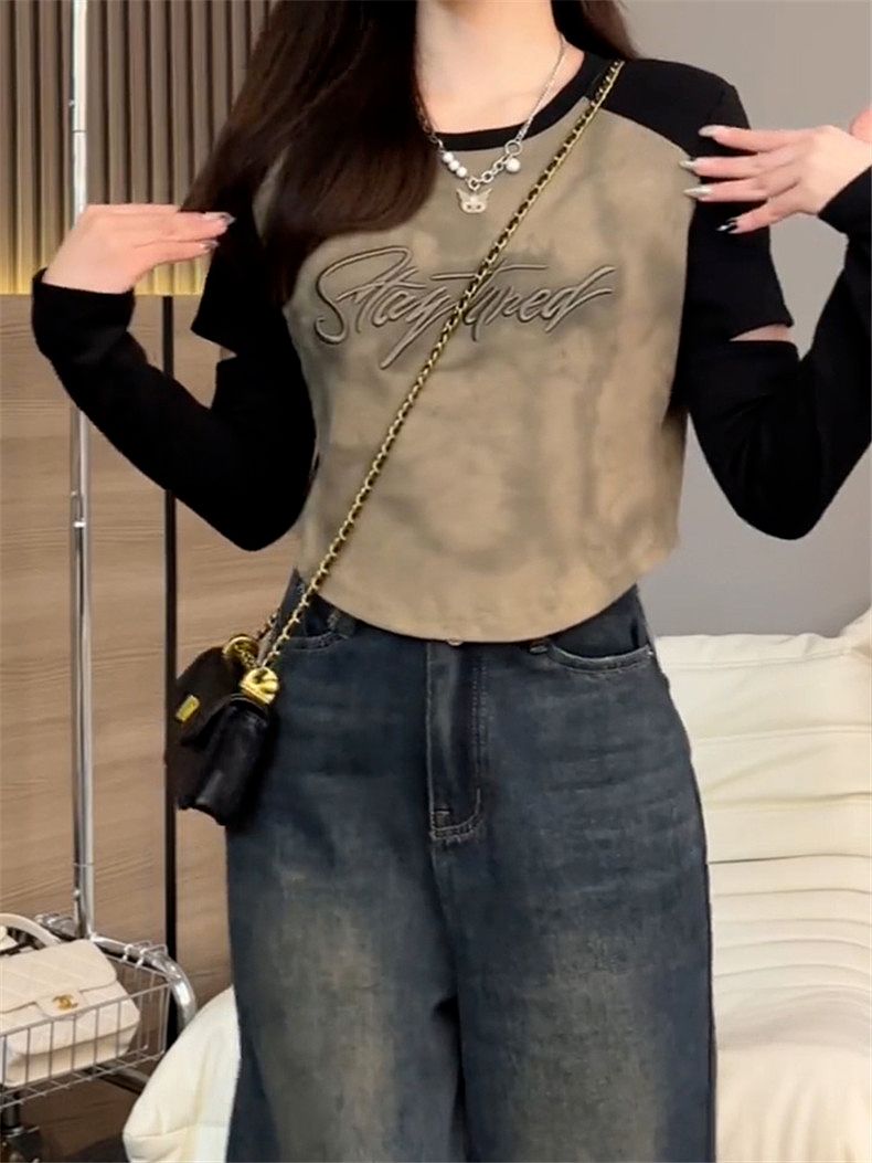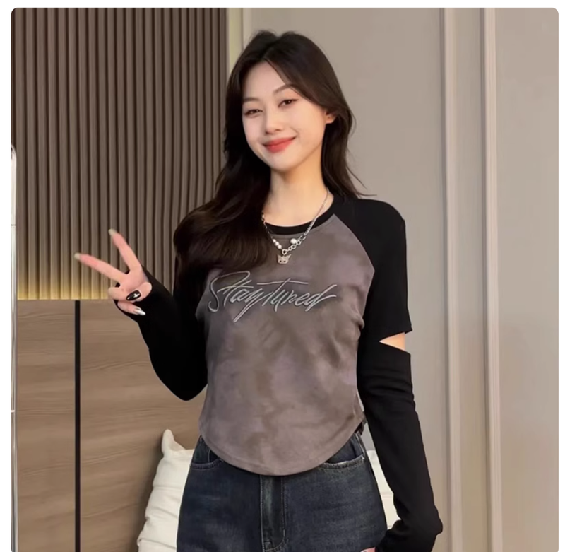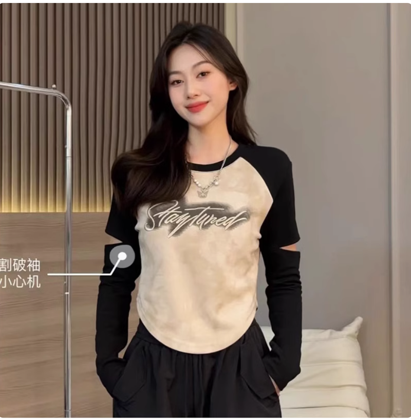 2025早春裝新款獨特內搭打底衫長袖t恤女小個子辣妹短上衣春秋款