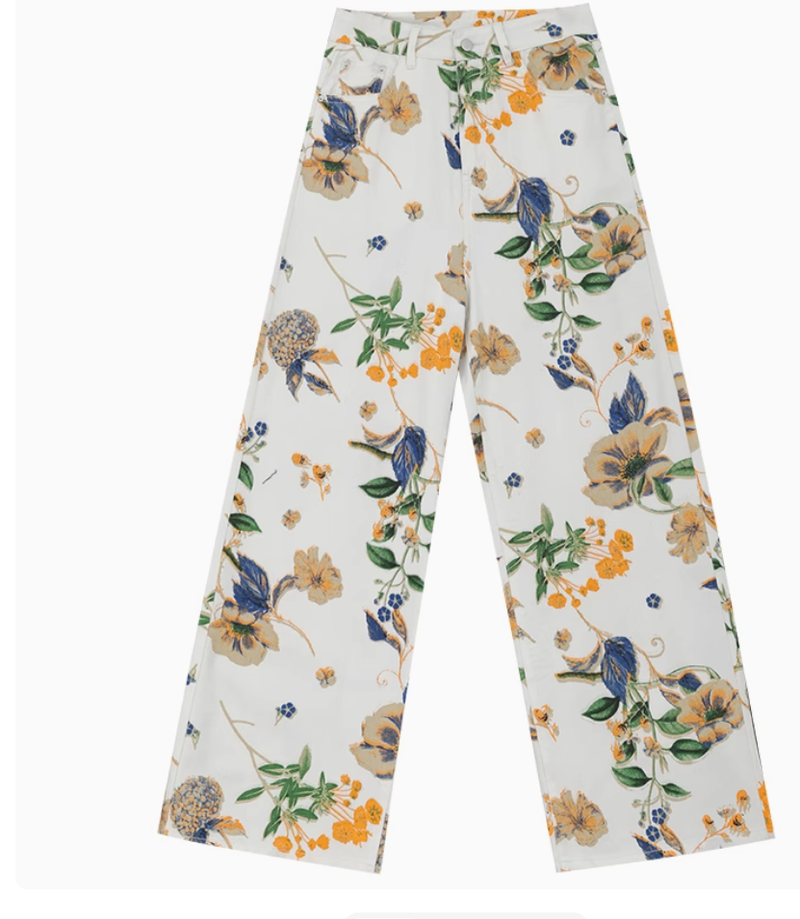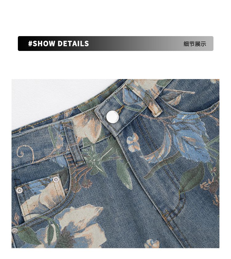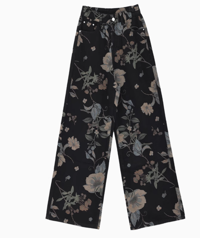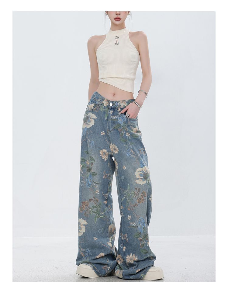 ABWEAR 2025年新款美式復古印花闊腿牛仔褲女小衆設計直筒拖地褲