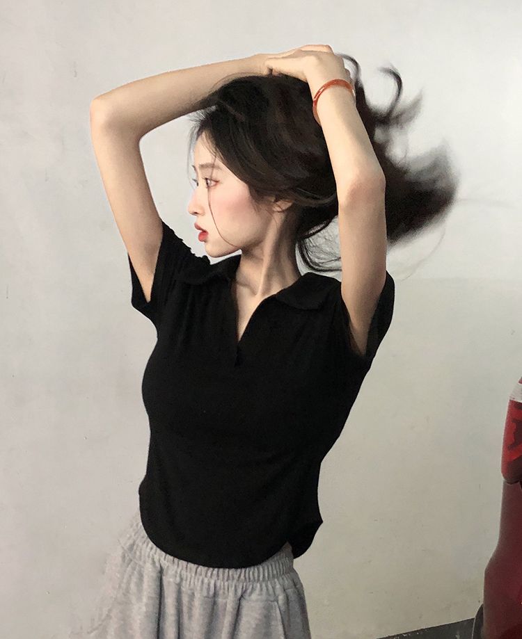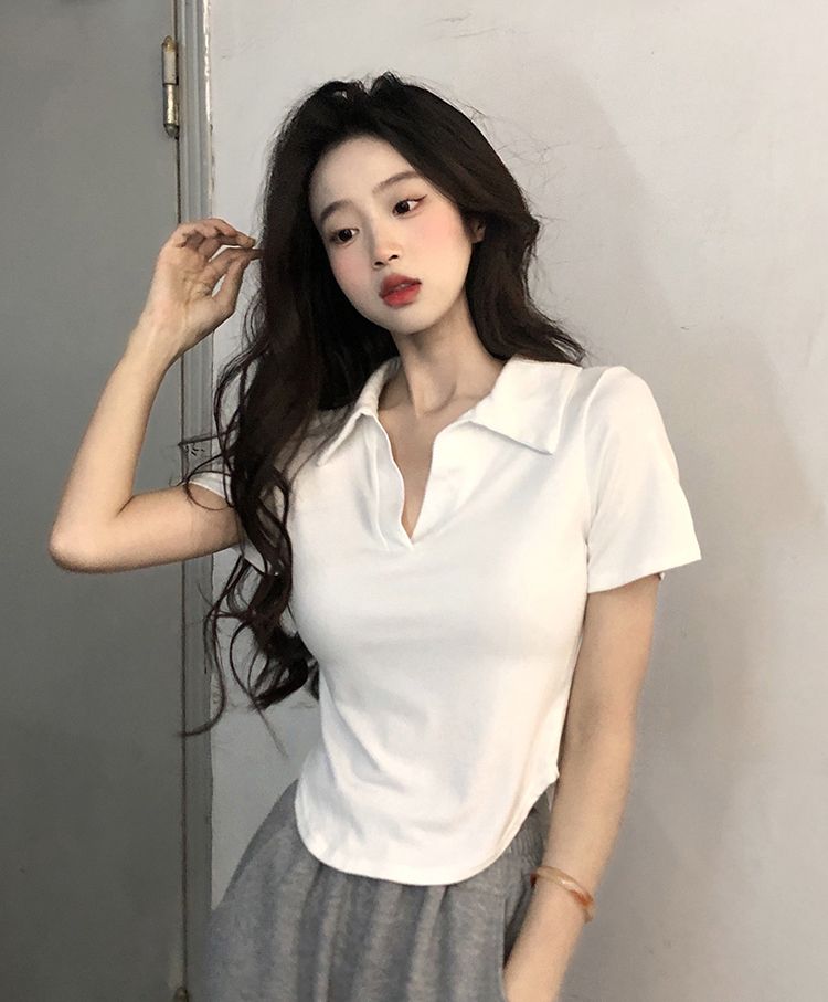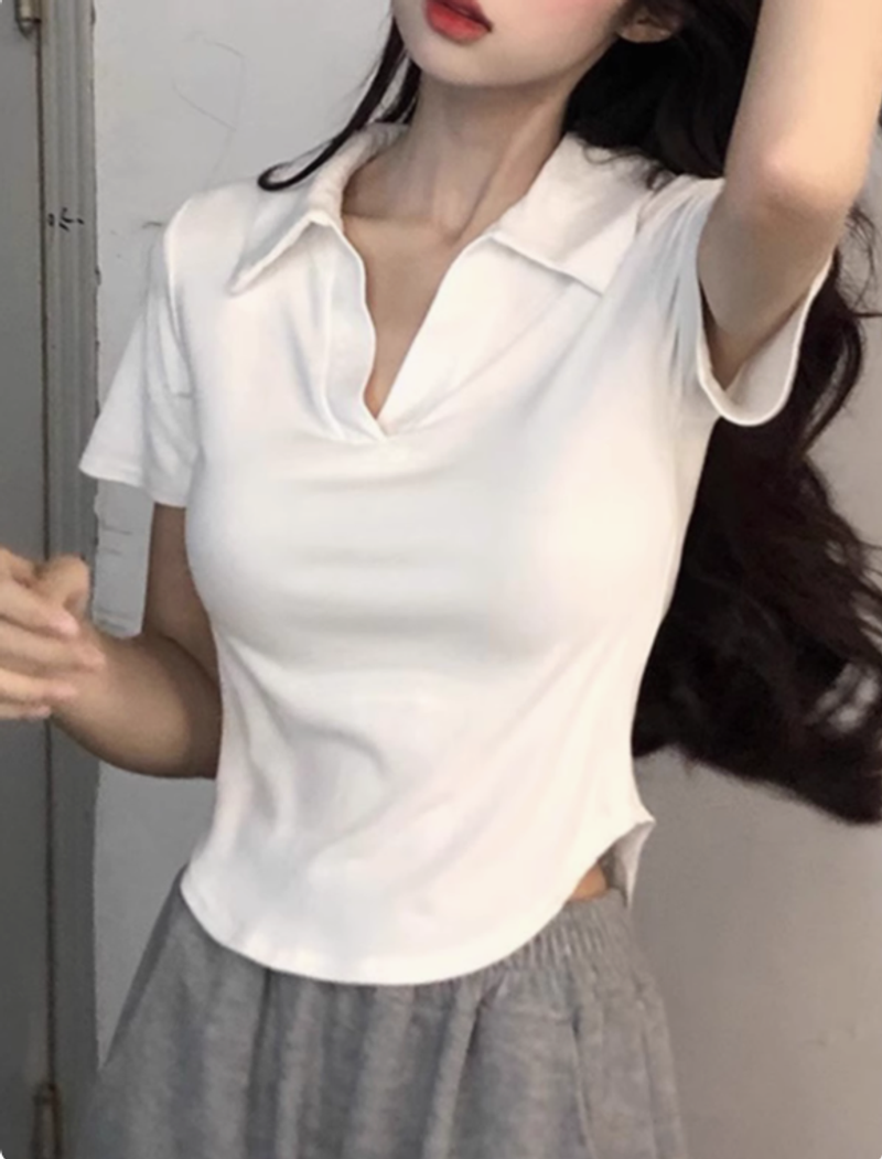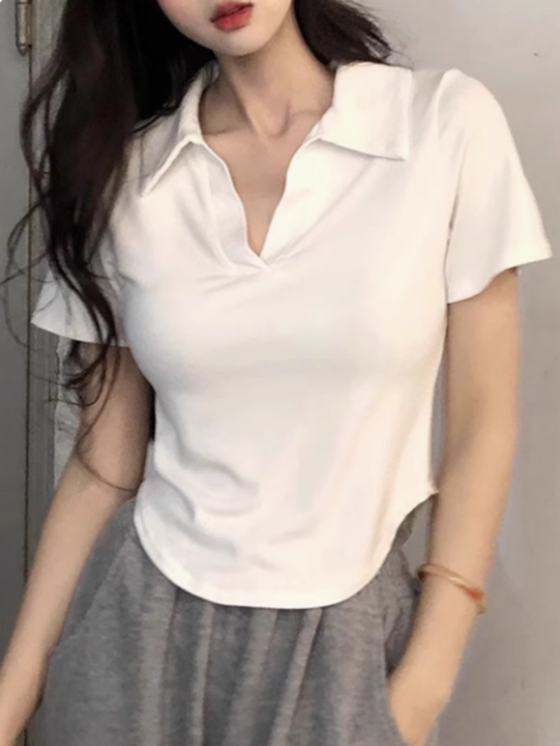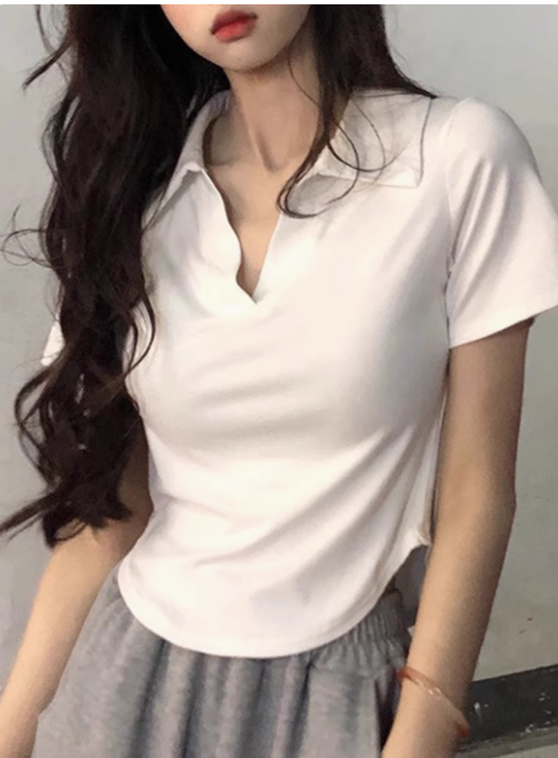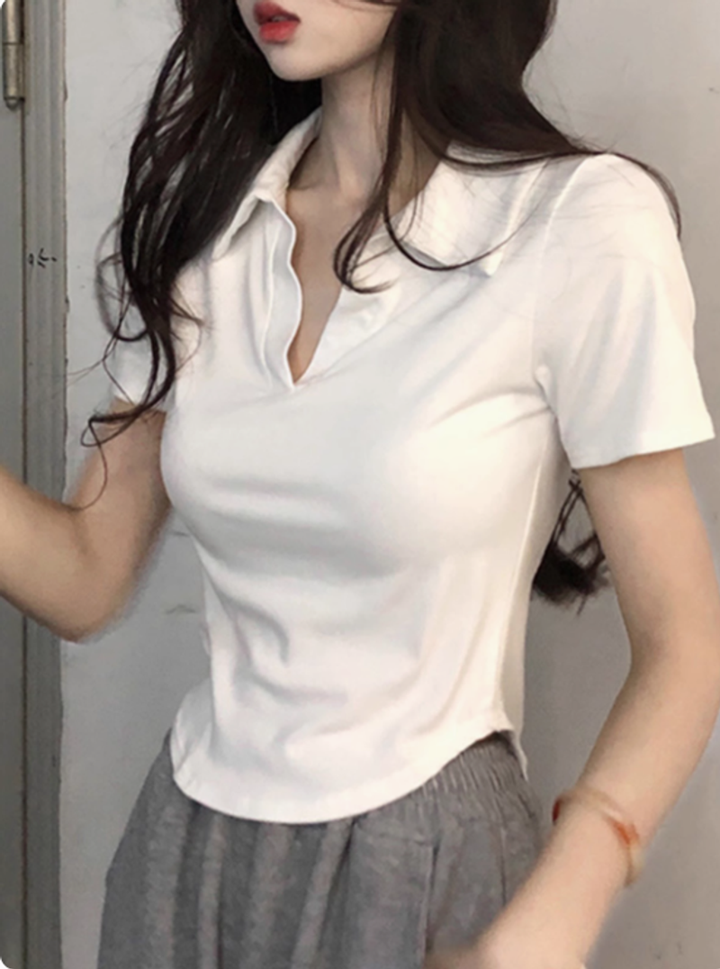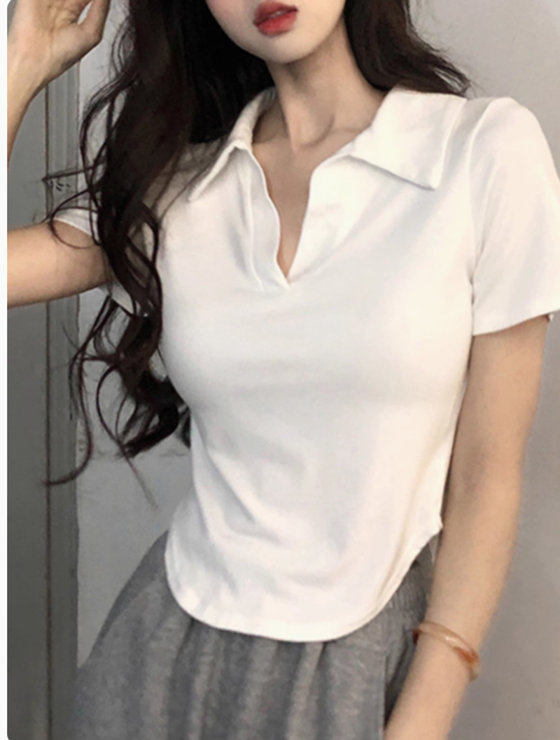 polo白色正肩短袖t恤春裝2025年新款女裝短款上衣設計感小衫夏季