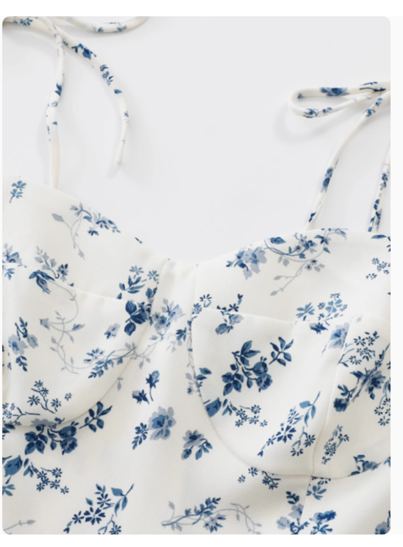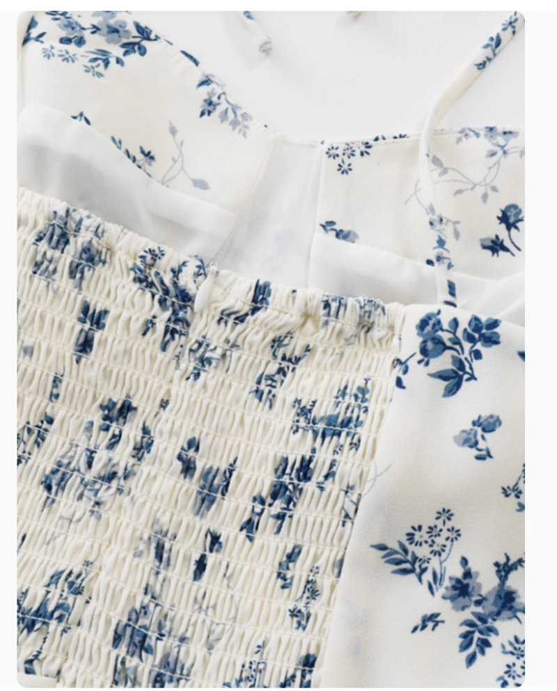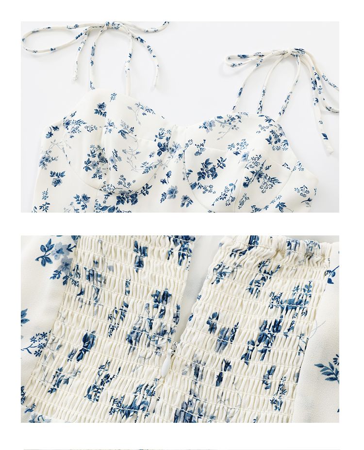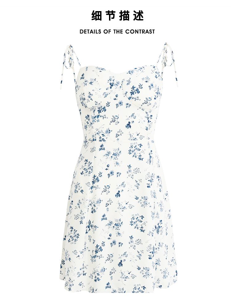 Since Beauty法式度假短款白色2025夏新款連衣裙女小個子碎花吊帶
